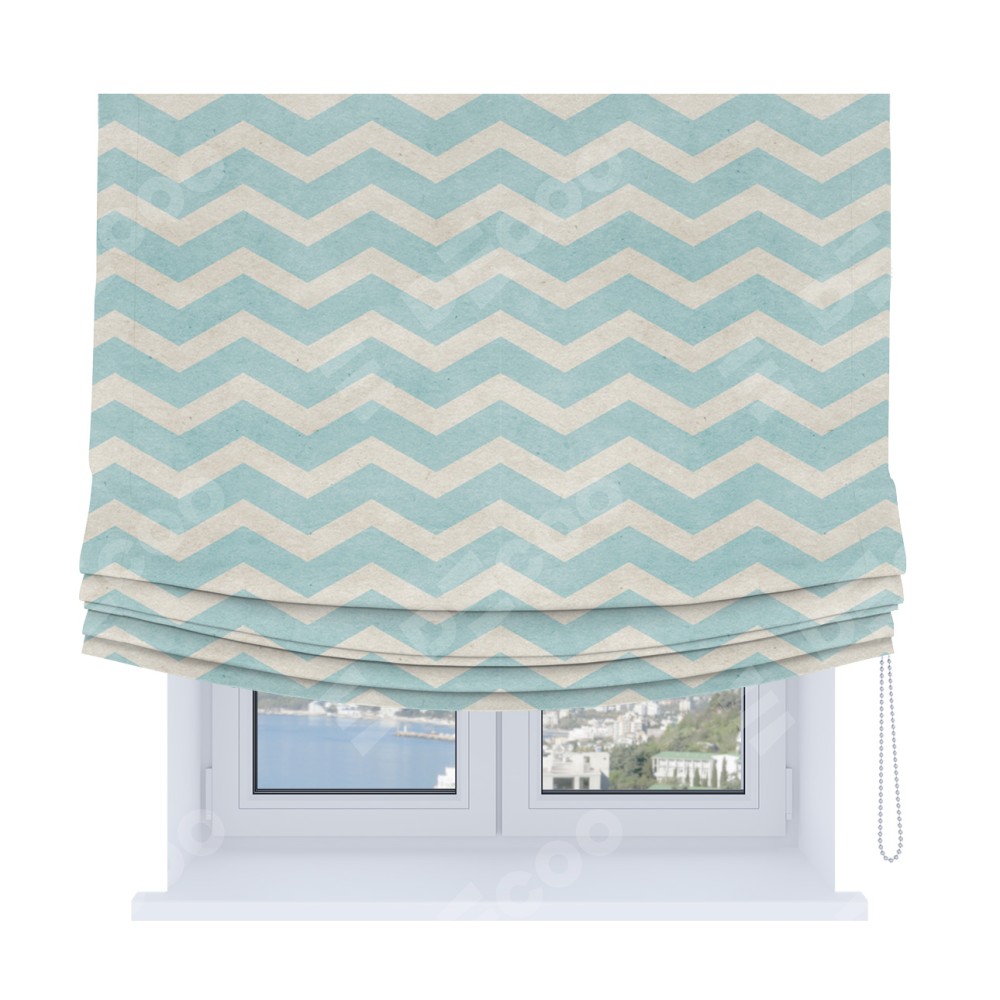Римская штора Soft с мягкими складками, «Голубой шеврон»