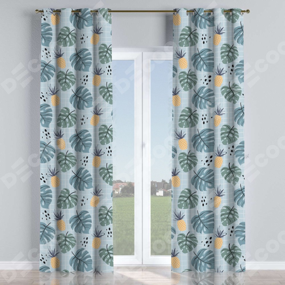 Комплект прямых штор, от производителя «Cortin», пошиты из ткани блэкаут с нанесением сублимационной печати «Ананасы и листья монстеры». Данная модель пошита на люверсах, комплектуется на выбор круглым карнизом и подходит для монтажа на стену или потолок. Прямые шторы на люверсах шьются по стандарту с коэффициентом 1/2 (на 100 см. ширины проёма 200 см. ширины ткани), отличительным преимуществом данной модели является простой способ монтажа. Достаточно повесить ее на трубу и штора готова!