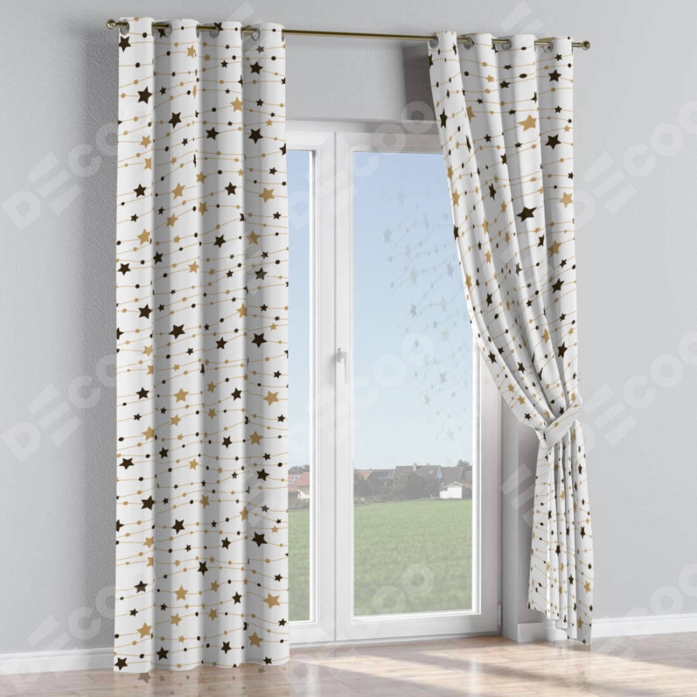 Комплект прямых штор, от производителя «Cortin», пошиты из ткани блэкаут с нанесением сублимационной печати «Звездная нить». Данная модель пошита на люверсах, комплектуется на выбор круглым карнизом и подходит для монтажа на стену или потолок. Прямые шторы на люверсах шьются по стандарту с коэффициентом 1/2 (на 100 см. ширины проёма 200 см. ширины ткани), отличительным преимуществом данной модели является простой способ монтажа. Достаточно повесить ее на трубу и штора готова!
