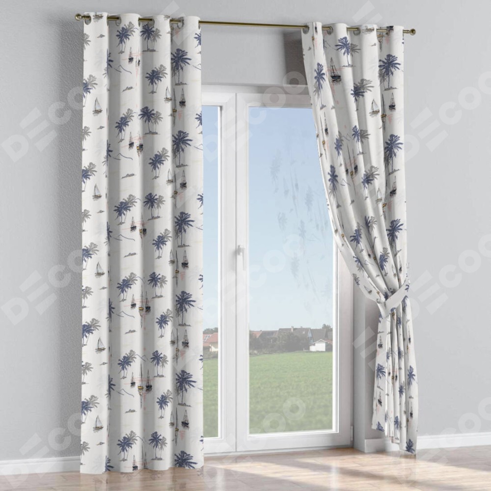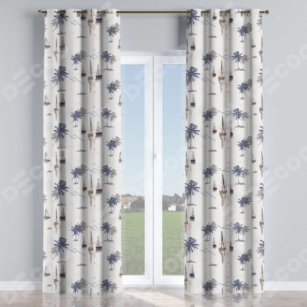 Комплект прямых штор, от производителя «Cortin», пошиты из ткани блэкаут с нанесением сублимационной печати «Морское путешествие». Данная модель пошита на люверсах, комплектуется на выбор круглым карнизом и подходит для монтажа на стену или потолок. Прямые шторы на люверсах шьются по стандарту с коэффициентом 1/2 (на 100 см. ширины проёма 200 см. ширины ткани), отличительным преимуществом данной модели является простой способ монтажа. Достаточно повесить ее на трубу и штора готова!