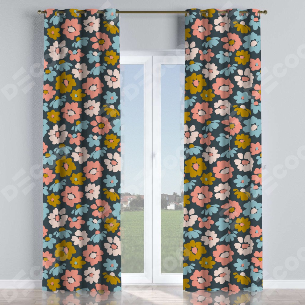 Комплект прямых штор, от производителя «Cortin», пошиты из ткани блэкаут с нанесением сублимационной печати «Яркие цветы». Данная модель пошита на люверсах, комплектуется на выбор круглым карнизом и подходит для монтажа на стену или потолок. Прямые шторы на люверсах шьются по стандарту с коэффициентом 1/2 (на 100 см. ширины проёма 200 см. ширины ткани), отличительным преимуществом данной модели является простой способ монтажа. Достаточно повесить ее на трубу и штора готова!
