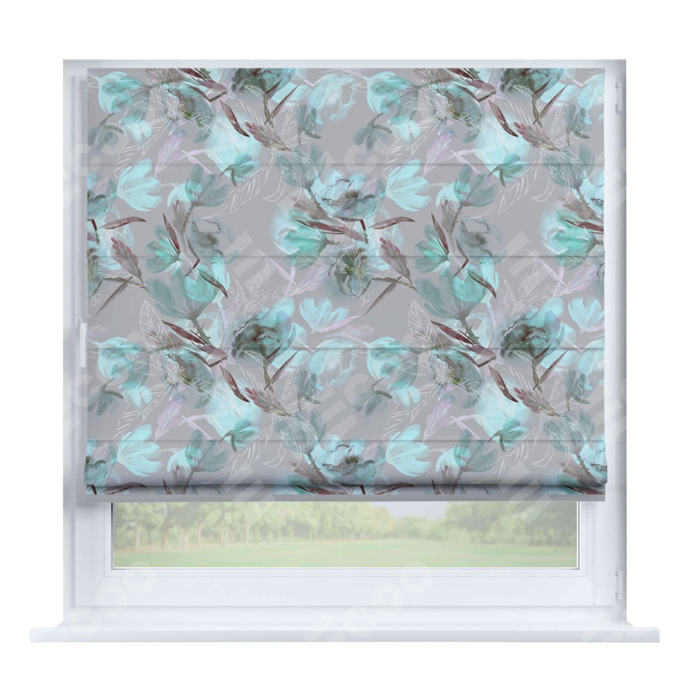 Римская штора производителя «Cortin», устанавливается на створку окна, пошита из ткани блэкаут с нанесением сублимационной печати «Цветочная акварель». Штора шьётся по индивидуальным размерам, для данного типа римской шторы возможная ширина от 35 до 150 см., высота до 250 см.