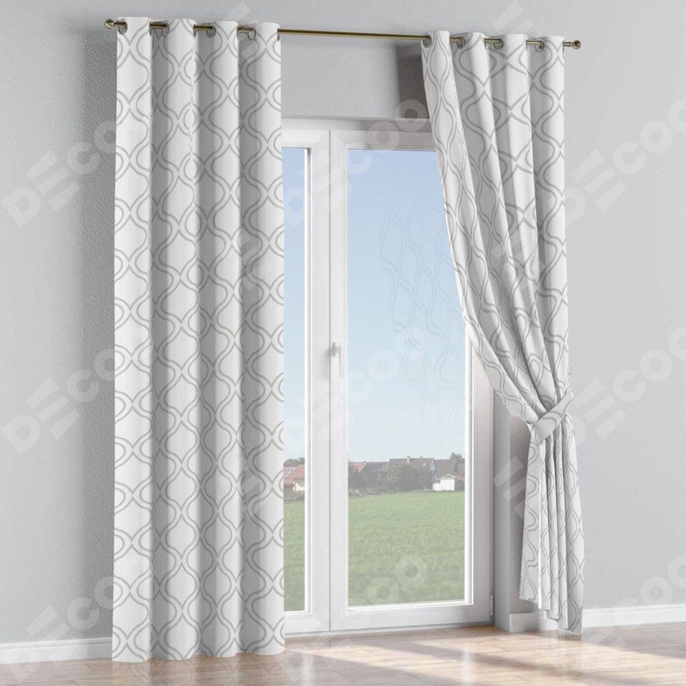Комплект прямых штор, от производителя «Cortin», пошиты из ткани блэкаут с нанесением сублимационной печати «Тайны востока белый». Данная модель пошита на люверсах, комплектуется на выбор круглым карнизом и подходит для монтажа на стену или потолок. Прямые шторы на люверсах шьются по стандарту с коэффициентом 1/2 (на 100 см. ширины проёма 200 см. ширины ткани), отличительным преимуществом данной модели является простой способ монтажа. Достаточно повесить ее на трубу и штора готова!