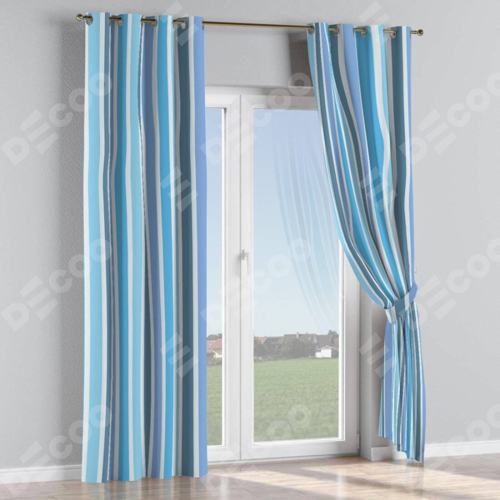 Комплект прямых штор, от производителя «Cortin», пошиты из ткани блэкаут с нанесением сублимационной печати «Сине-голубые вертикальные полоски». Данная модель пошита на люверсах, комплектуется на выбор круглым карнизом и подходит для монтажа на стену или потолок. Прямые шторы на люверсах шьются по стандарту с коэффициентом 1/2 (на 100 см. ширины проёма 200 см. ширины ткани), отличительным преимуществом данной модели является простой способ монтажа. Достаточно повесить ее на трубу и штора готова!