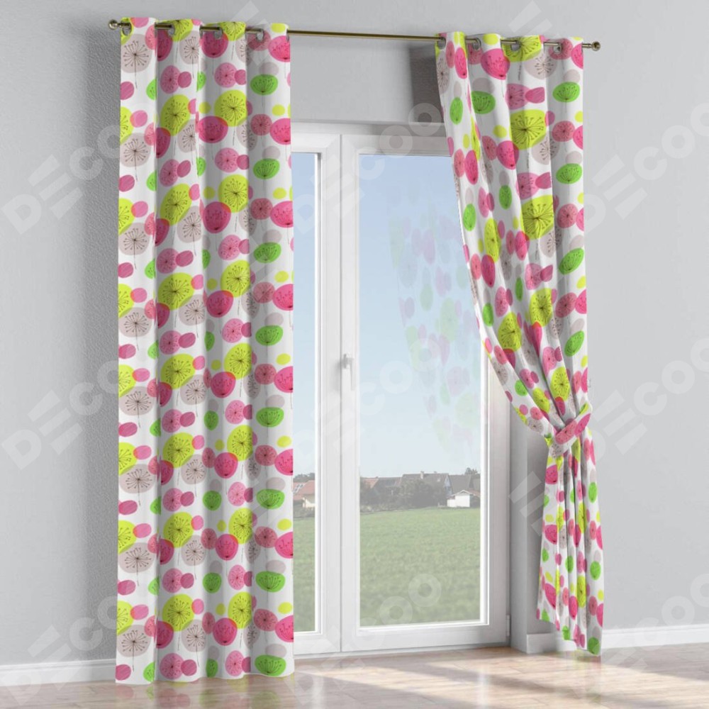 Комплект прямых штор, от производителя «Cortin», пошиты из ткани блэкаут с нанесением сублимационной печати «Цветные одуванчики». Данная модель пошита на люверсах, комплектуется на выбор круглым карнизом и подходит для монтажа на стену или потолок. Прямые шторы на люверсах шьются по стандарту с коэффициентом 1/2 (на 100 см. ширины проёма 200 см. ширины ткани), отличительным преимуществом данной модели является простой способ монтажа. Достаточно повесить ее на трубу и штора готова!