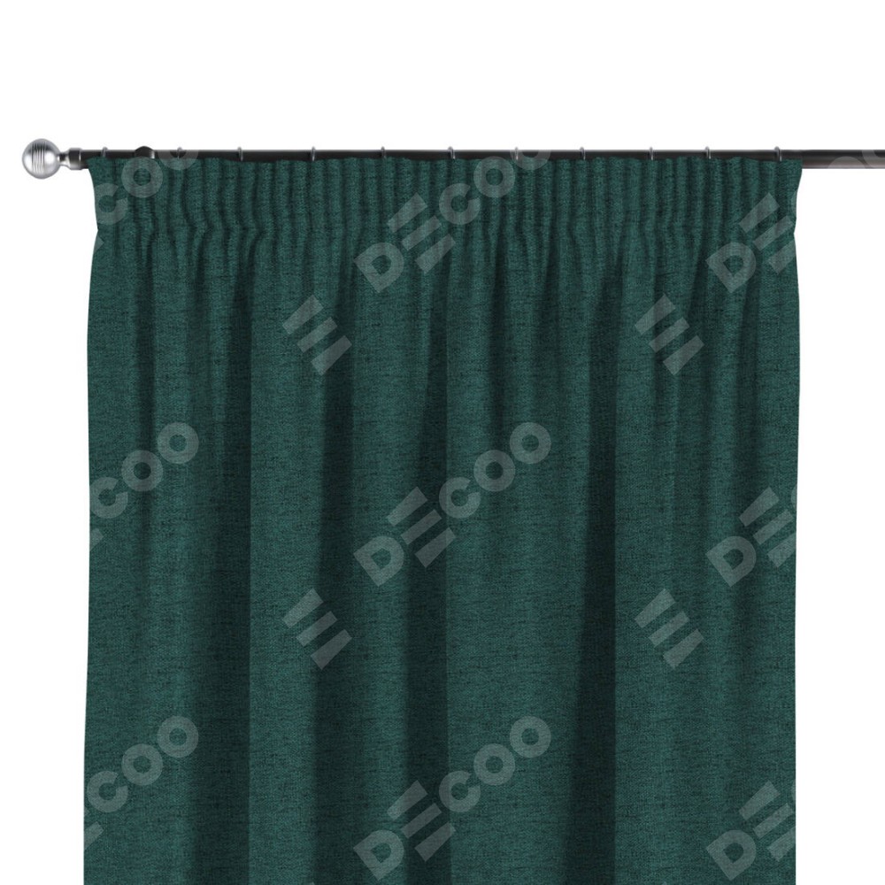 Комплект прямых штор, от производителя «Cortin», пошиты из ткани стиф димаут сине-зелёный, артикул ткани 18194. С изнаночной стороны в верхней части штор пристрачивается шторная лента с декоративными складками «Карандаш». Для создания элегантных складок прямые шторы шьются по стандарту с коэффициентом 1:2 (на 100 см. ширины проёма 200 см. ширины ткани).