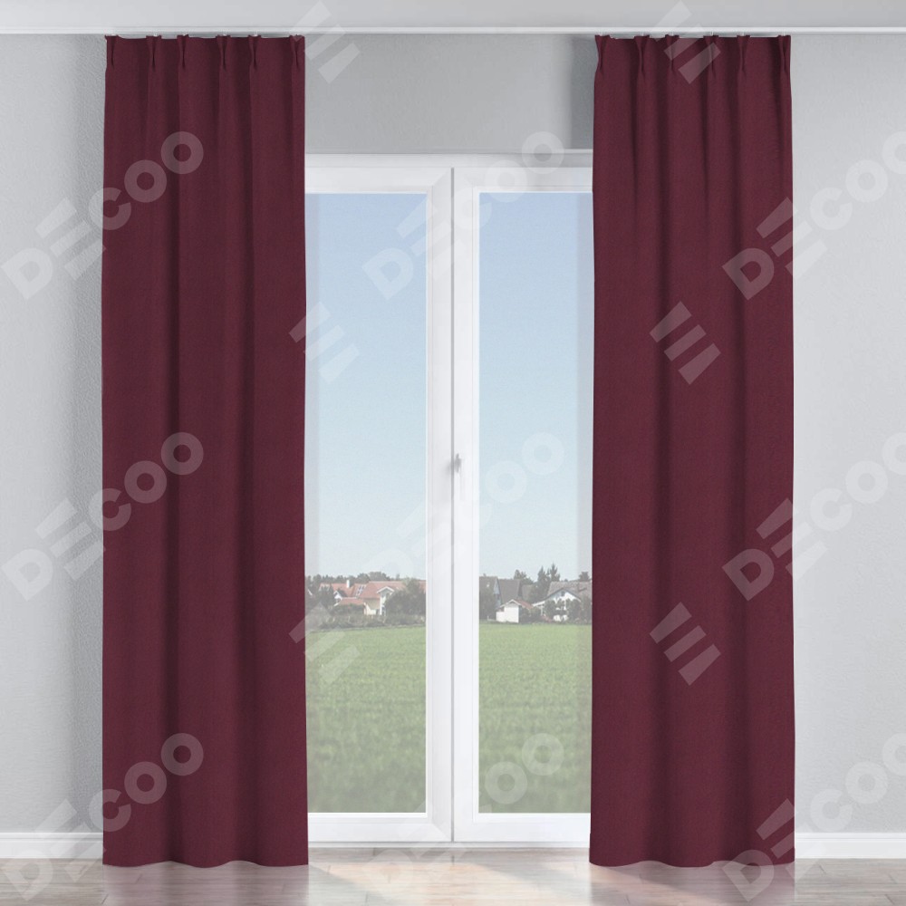 Комплект прямых штор, от производителя «Cortin», пошиты из ткани блэкаут однотонный сиреневый, артикул ткани 29333−2. С изнаночной стороны в верхней части штор пристрачивается шторная лента с декоративными складками «Кустик». Для создания элегантных складок прямые шторы шьются по стандарту с коэффициентом 1:2 (на 100 см. ширины проёма 200 см. ширины ткани).