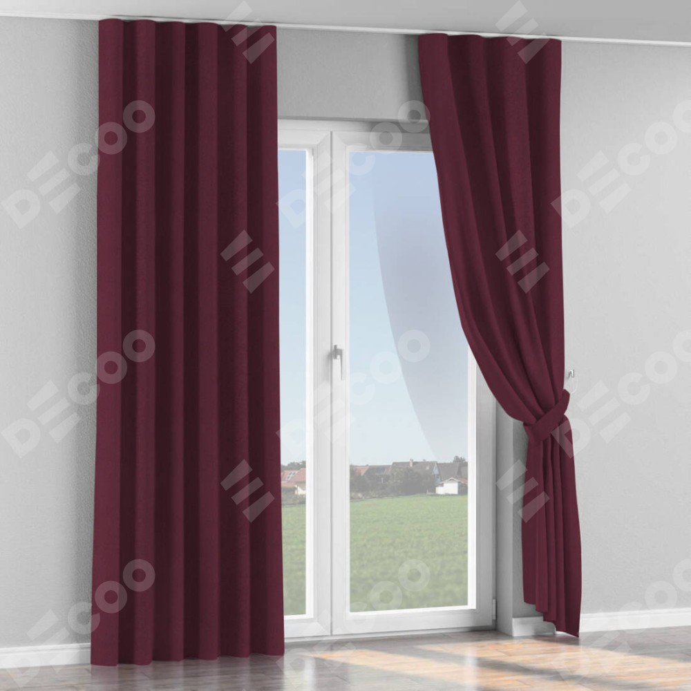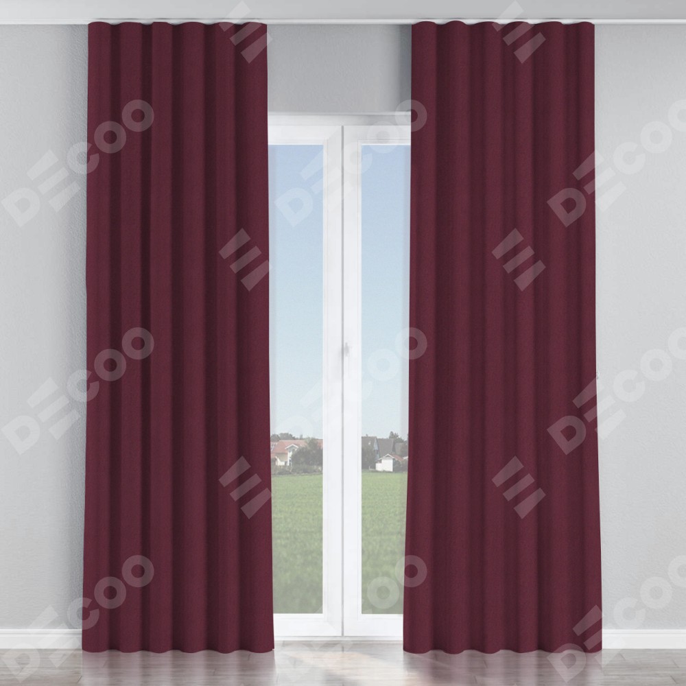 Комплект прямых штор, от производителя «Cortin», пошиты из ткани блэкаут однотонный сиреневый, артикул ткани 29333−2. С изнаночной стороны в верхней части штор пристрачивается шторная лента с декоративными складками «Волна». Для создания элегантных складок прямые шторы шьются по стандарту с коэффициентом 1:2 (на 100 см. ширины проёма 200 см. ширины ткани).