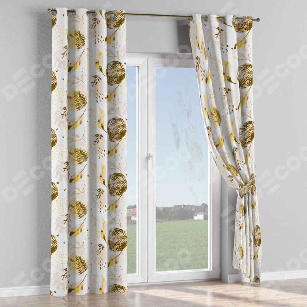 Комплект прямых штор, от производителя «Cortin», пошиты из ткани блэкаут с нанесением сублимационной печати «Золотые листья». Данная модель пошита на люверсах, комплектуется на выбор круглым карнизом и подходит для монтажа на стену или потолок. Прямые шторы на люверсах шьются по стандарту с коэффициентом 1/2 (на 100 см. ширины проёма 200 см. ширины ткани), отличительным преимуществом данной модели является простой способ монтажа. Достаточно повесить ее на трубу и штора готова!