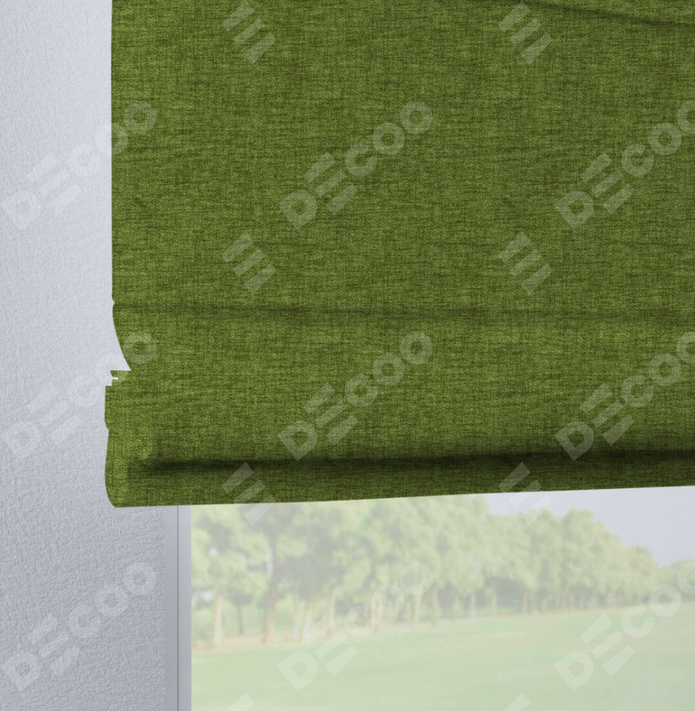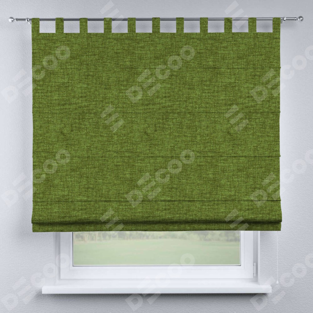Римская штора производителя «Cortin», используется для проёма, пошита из ткани рогожка димаут салатовый, артикул ткани 80423. Данная модель пошита на петлях, комплектуется на выбор круглым карнизом и подходит для монтажа на стену. Римская штора на петлях имеет простую систему регулировки высоты, отличительным преимуществом данной модели является простой способ монтажа. Достаточно повесить ее на трубу и штора готова!