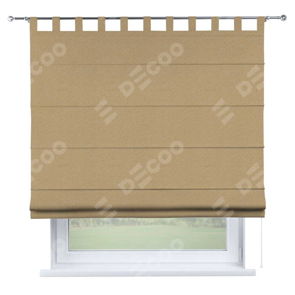 Римская штора производителя «Cortin», используется для проёма, пошита из ткани лён димаут тёмно-бежевый, артикул ткани 83037. Данная модель пошита на петлях, комплектуется на выбор круглым карнизом и подходит для монтажа на стену. Римская штора на петлях имеет простую систему регулировки высоты, отличительным преимуществом данной модели является простой способ монтажа. Достаточно повесить ее на трубу и штора готова!