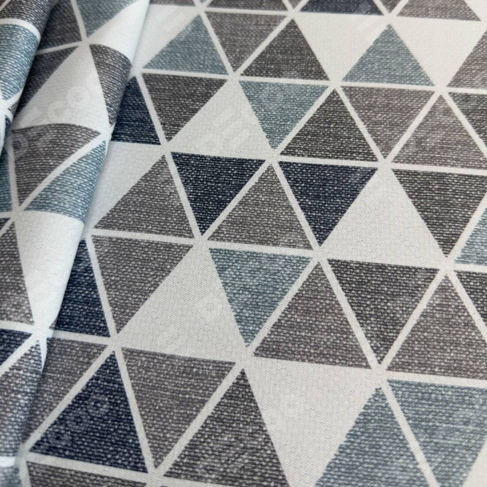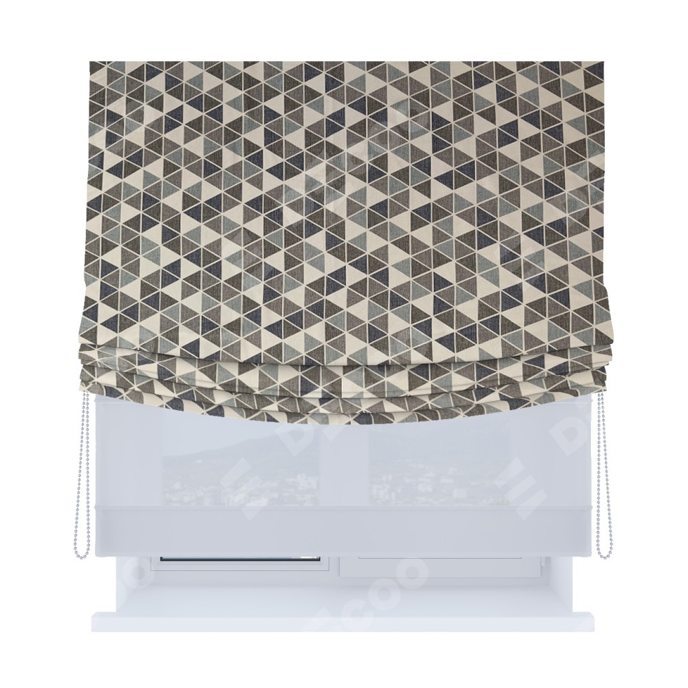 Римская штора «Кортин», день-ночь с мягкими складками, димаут «Треугольники синие»