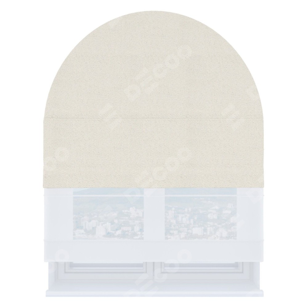 Римская штора день-ночь производителя «Cortin», используется для арочного проёма, пошита из двух полотен, с лицевой стороны блэкаут тиснение с блеском светло-серый артикул 34633, вторая ткань тюль (по стандарту комплектуется тюль белого цвета артикул V-01). Изнаночная сторона основного материала черного цвета, что обеспечивает необходимую светонепроницаемость. Штора шьётся по индивидуальным размерам, для данного типа римской шторы возможная ширина от 60 до 300 см. Удобное управление каждой шторой отдельно.