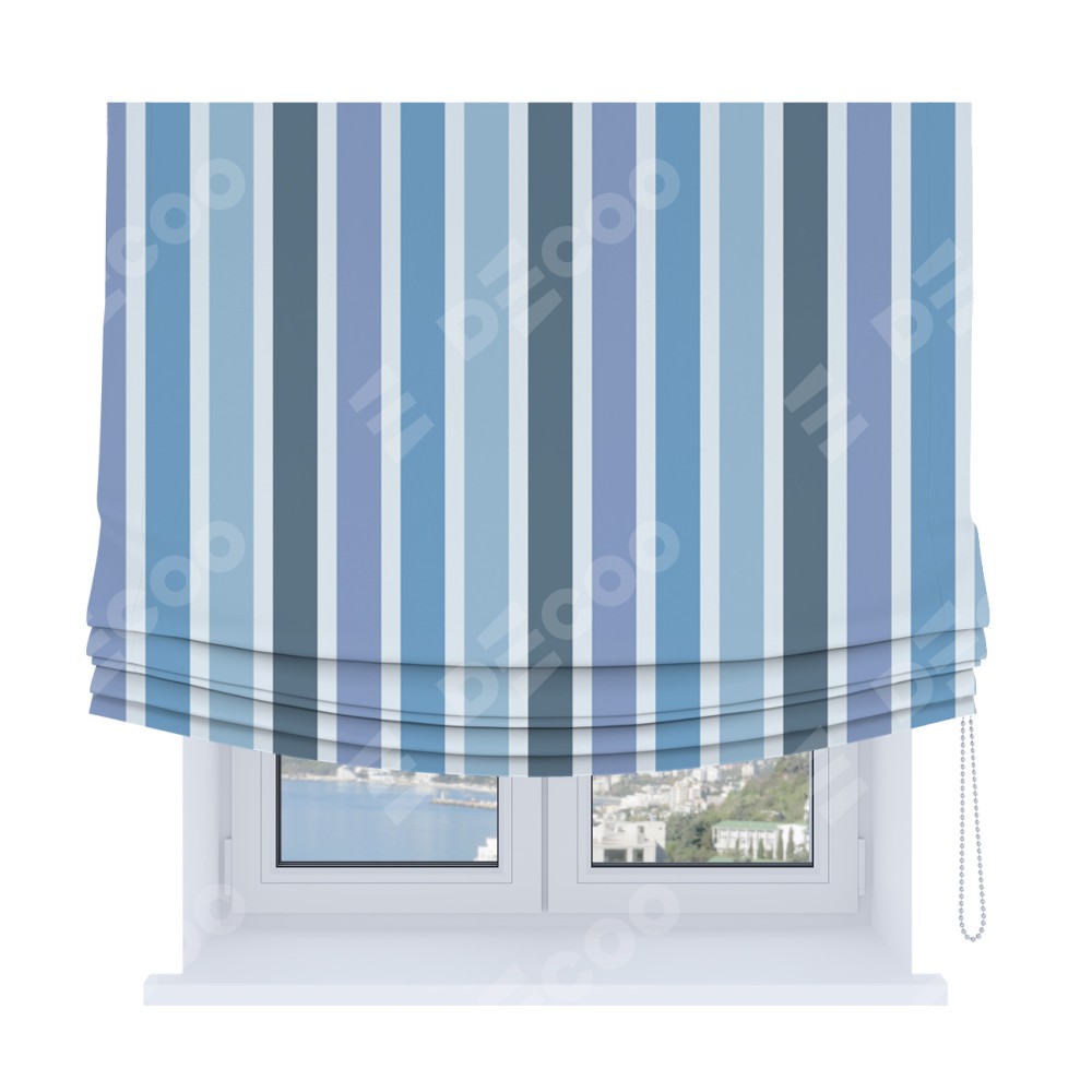 Римская штора Soft с мягкими складками, «Сине-голубые вертикальные полоски»