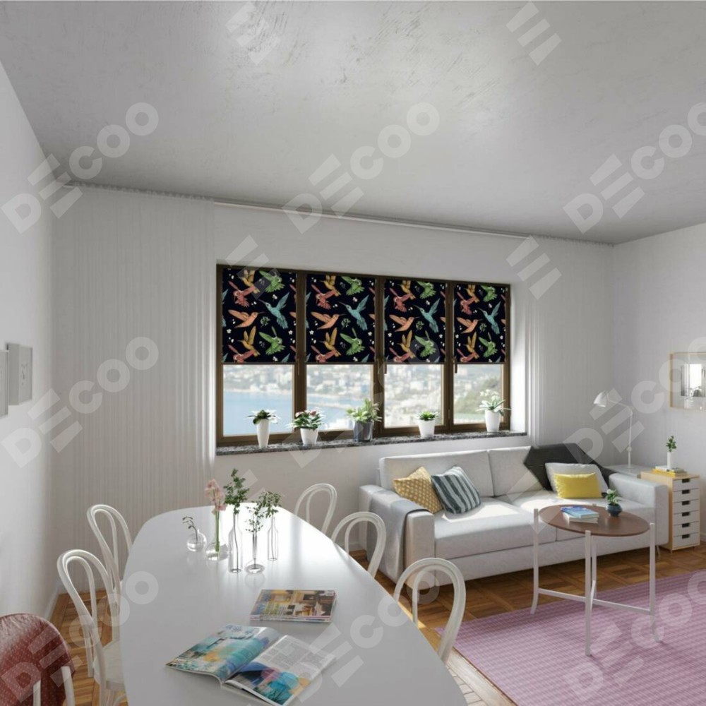 Заказать Рулонная штора Мини с принтом Птицы и цветы по индивидуальным размерам. Артикул товара: 236. Стоимость заказа на изделие будет зависеть от выбранных опций и устанавливается от 1 500 руб. На сайте магазина Decoo вы сможете выбрать рулонные шторы в любых размерах.