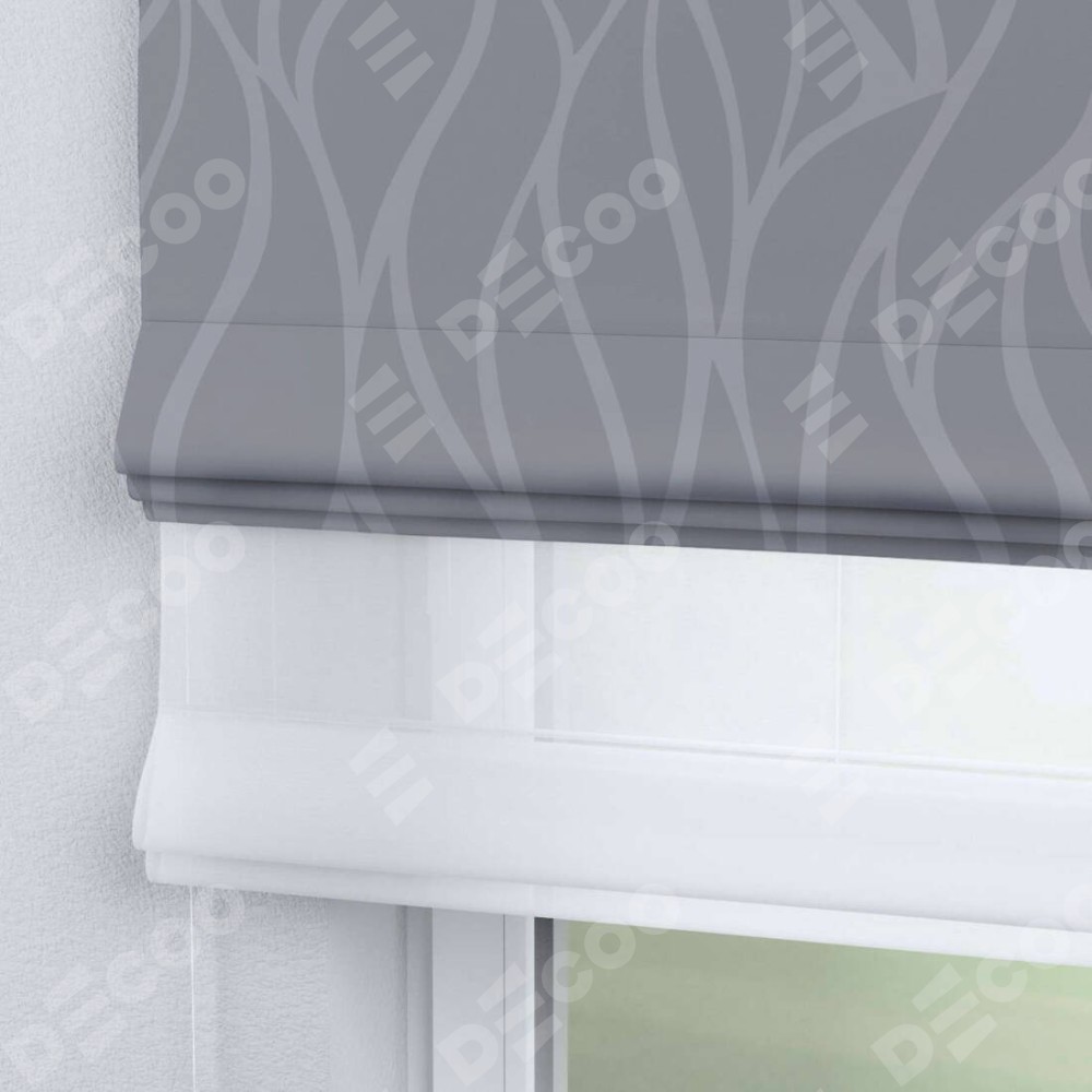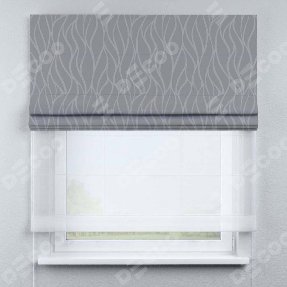 Римская штора день-ночь производителя «Cortin», используется для проёма, пошита из двух полотен, с лицевой блэкаут с нанесением сублимационной печати «Саванна графит», вторая ткань тюль (по стандарту комплектуется тюль белого цвета артикул V-01). Имеет универсальный механизм и подходит для монтажа: на потолок, на стену и в нишу.