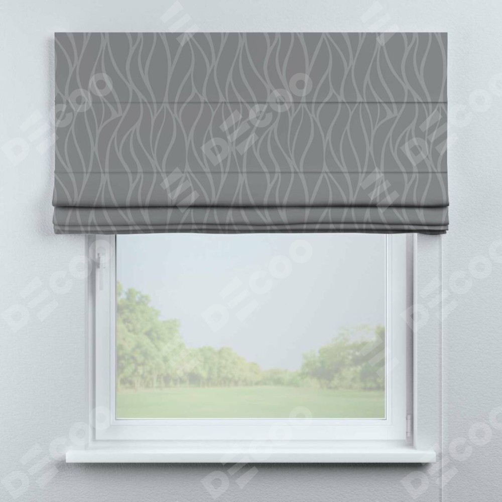 Римская штора производителя «Cortin», используется для проёма, пошита из ткани блэкаут с нанесением сублимационной печати «Саванна графит». Имеет универсальный механизм и подходит для монтажа: на потолок, на стену и в нишу.