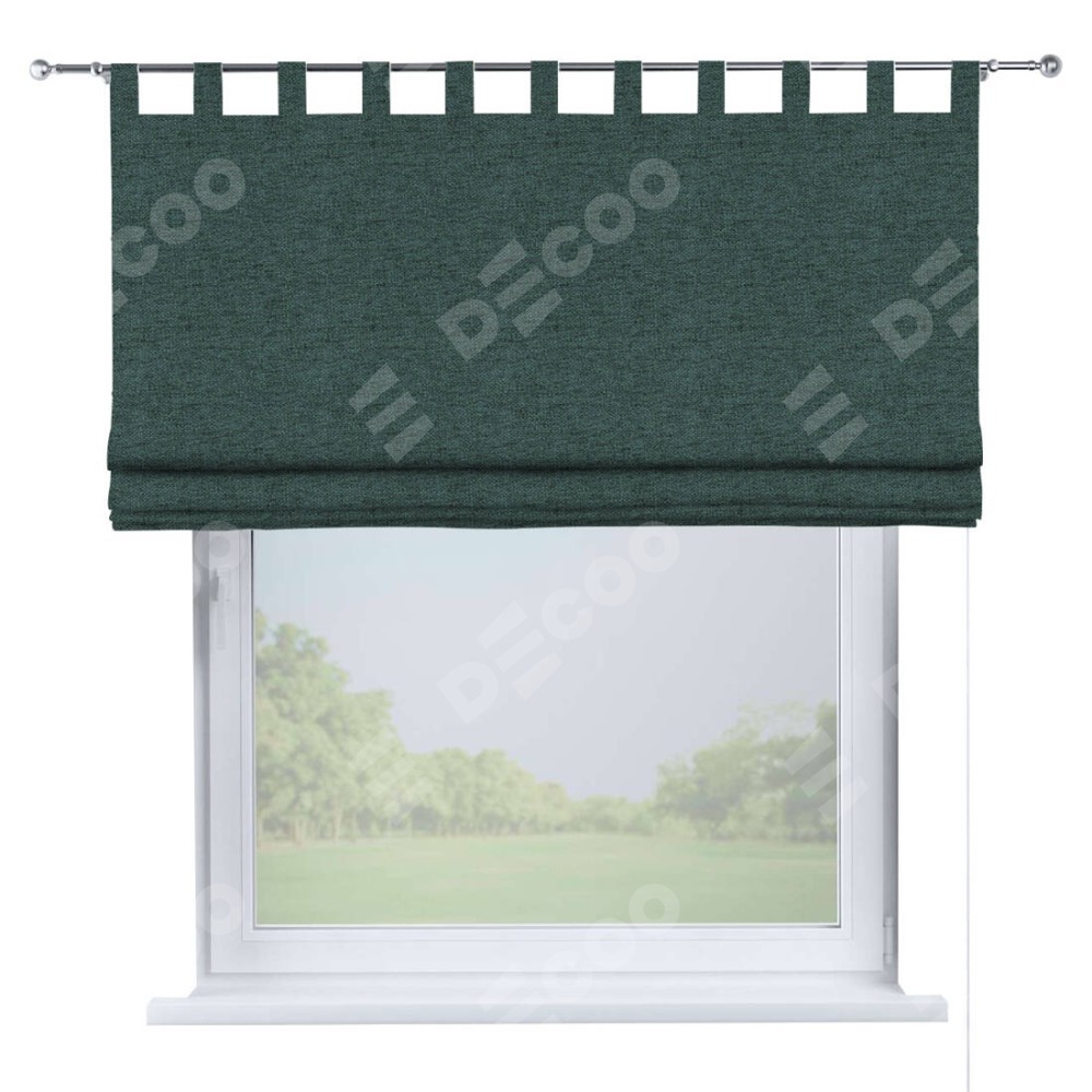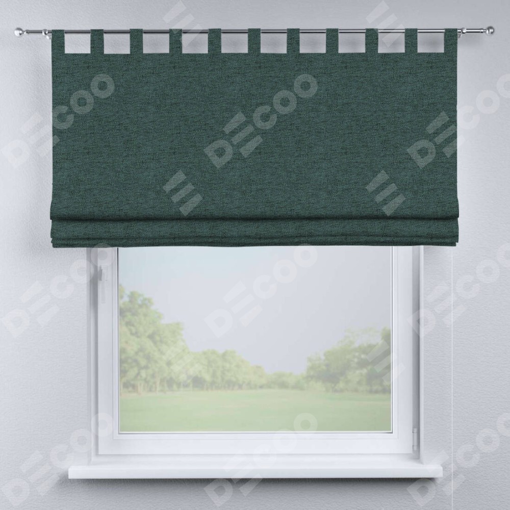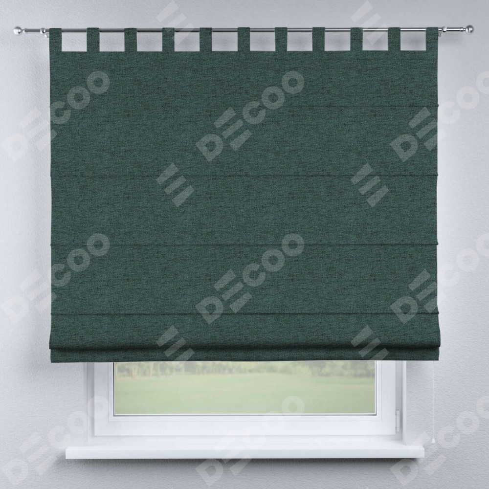 Римская штора производителя «Cortin», используется для проёма, пошита из ткани стиф димаут сине-зелёный, артикул ткани 18194. Данная модель пошита на петлях, комплектуется на выбор круглым карнизом и подходит для монтажа на стену. Римская штора на петлях имеет простую систему регулировки высоты, отличительным преимуществом данной модели является простой способ монтажа. Достаточно повесить ее на трубу и штора готова!