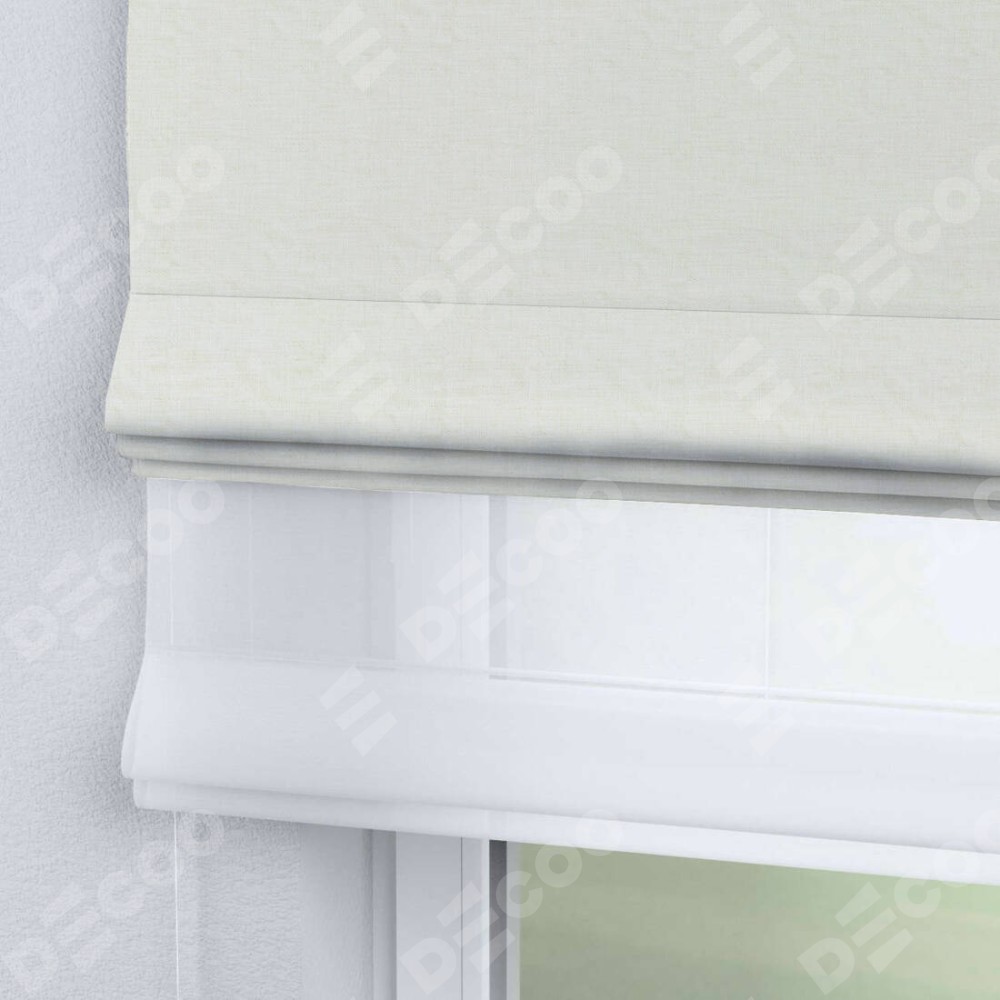 Римская штора день-ночь производителя «Cortin», используется для проёма, пошита из двух полотен, с лицевой стороны лён молочный артикул 23568, вторая ткань тюль (по стандарту комплектуется тюль белого цвета артикул V-01). Имеет универсальный механизм и подходит для монтажа: на потолок, на стену и в нишу.