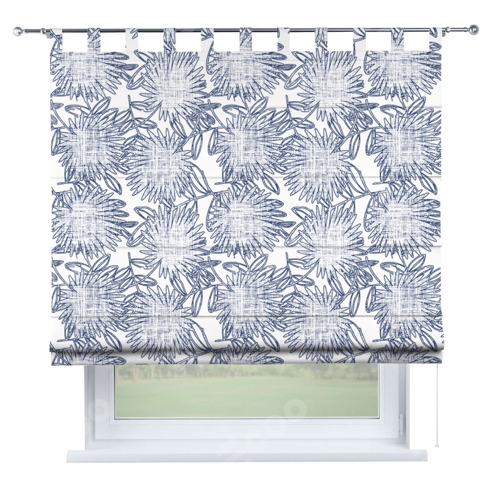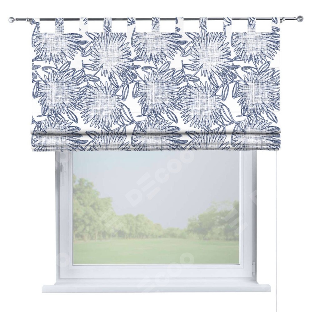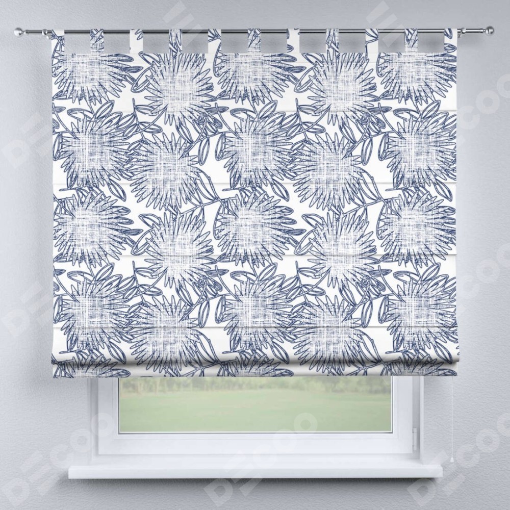 Римская штора производителя «Cortin», используется для проёма, пошита из ткани блэкаут с нанесением сублимационной печати «Синий букет». Данная модель пошита на петлях, комплектуется на выбор круглым карнизом и подходит для монтажа на стену. Римская штора на петлях имеет простую систему регулировки высоты, отличительным преимуществом данной модели является простой способ монтажа. Достаточно повесить ее на трубу и штора готова!
