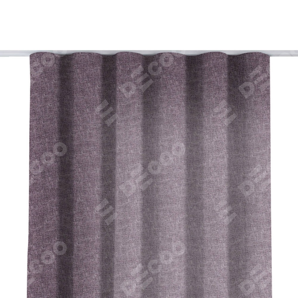Комплект прямых штор, от производителя «Cortin», пошиты из ткани лён кашемир фиолетовый, артикул ткани 17211. С изнаночной стороны в верхней части штор пристрачивается шторная лента с декоративными складками «Волна». Для создания элегантных складок прямые шторы шьются по стандарту с коэффициентом 1:2 (на 100 см. ширины проёма 200 см. ширины ткани).