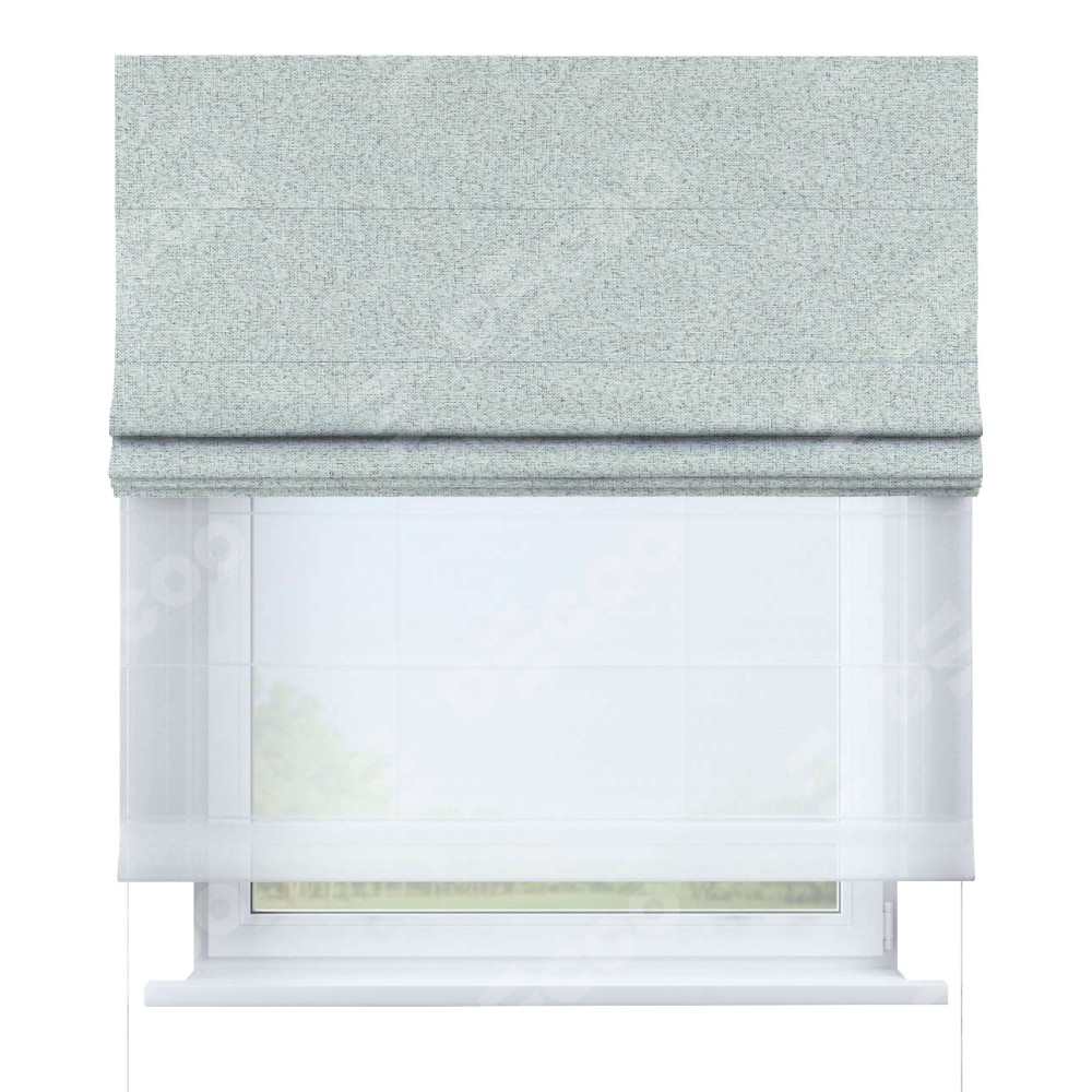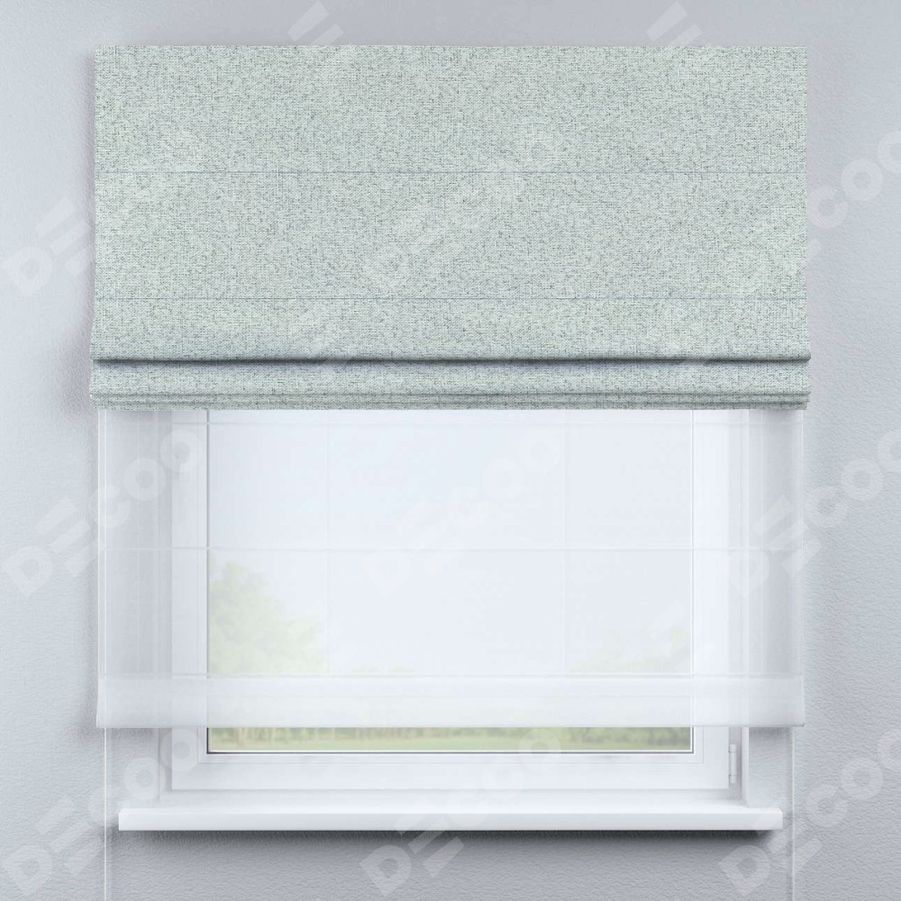 Римская штора день-ночь производителя «Cortin», используется для проёма, пошита из двух полотен, с лицевой стороны лён блэкаут белый артикул 69451, вторая ткань тюль (по стандарту комплектуется тюль белого цвета артикул V-01). Имеет универсальный механизм и подходит для монтажа: на потолок, на стену и в нишу.