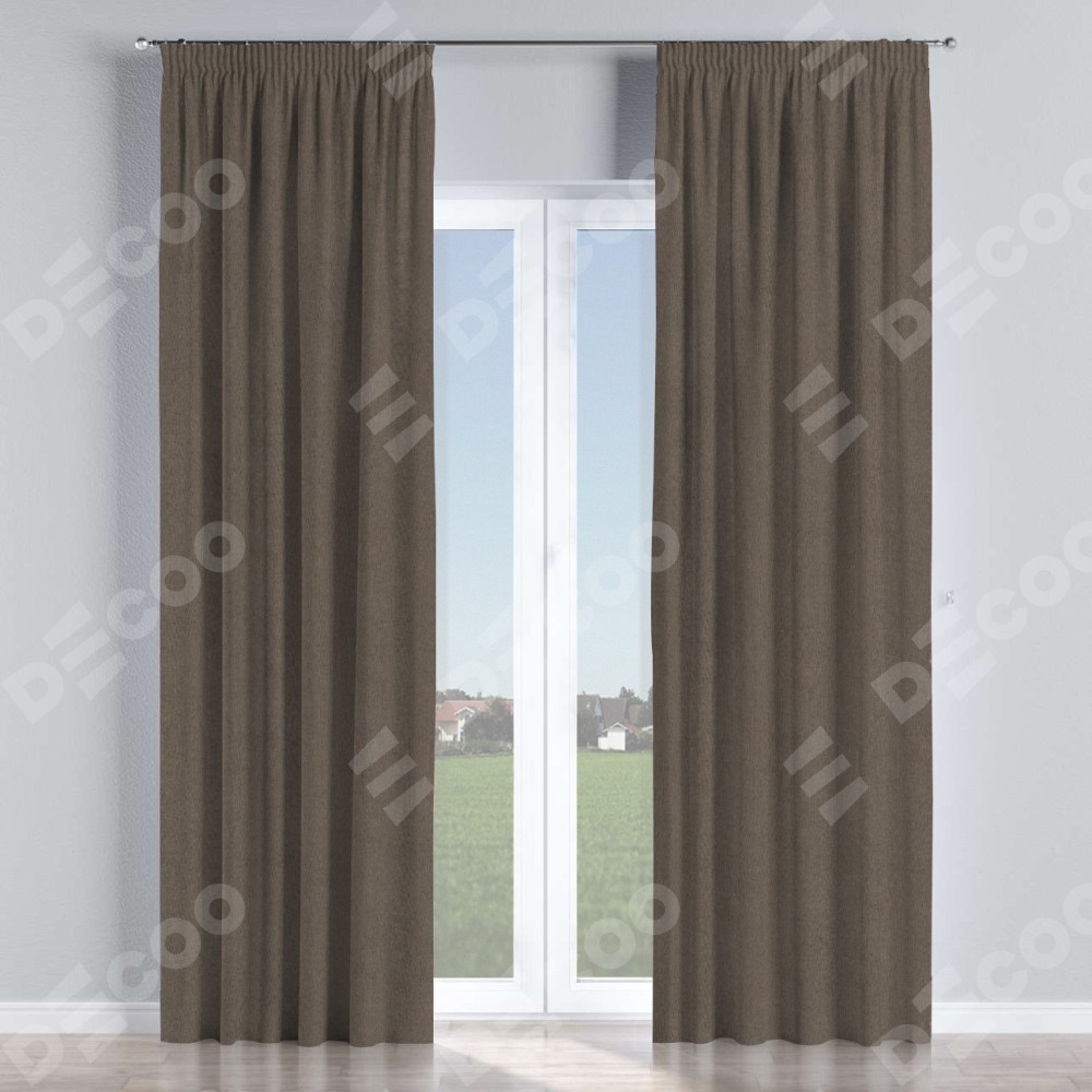Комплект штор на тесьме «Карандаш», лён блэкаут коричневый