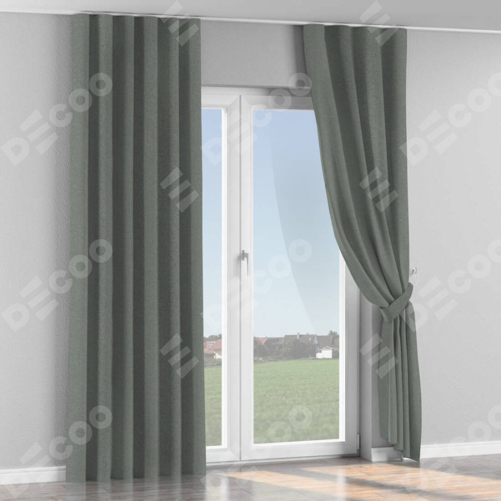 Комплект прямых штор, от производителя «Cortin», пошиты из ткани лён блэкаут серый, артикул ткани 69447. С изнаночной стороны в верхней части штор пристрачивается шторная лента с декоративными складками «Волна». Для создания элегантных складок прямые шторы шьются по стандарту с коэффициентом 1:2 (на 100 см. ширины проёма 200 см. ширины ткани).