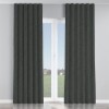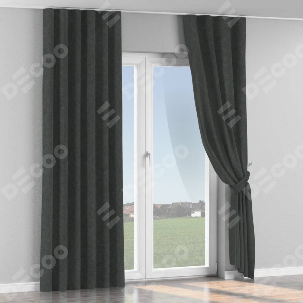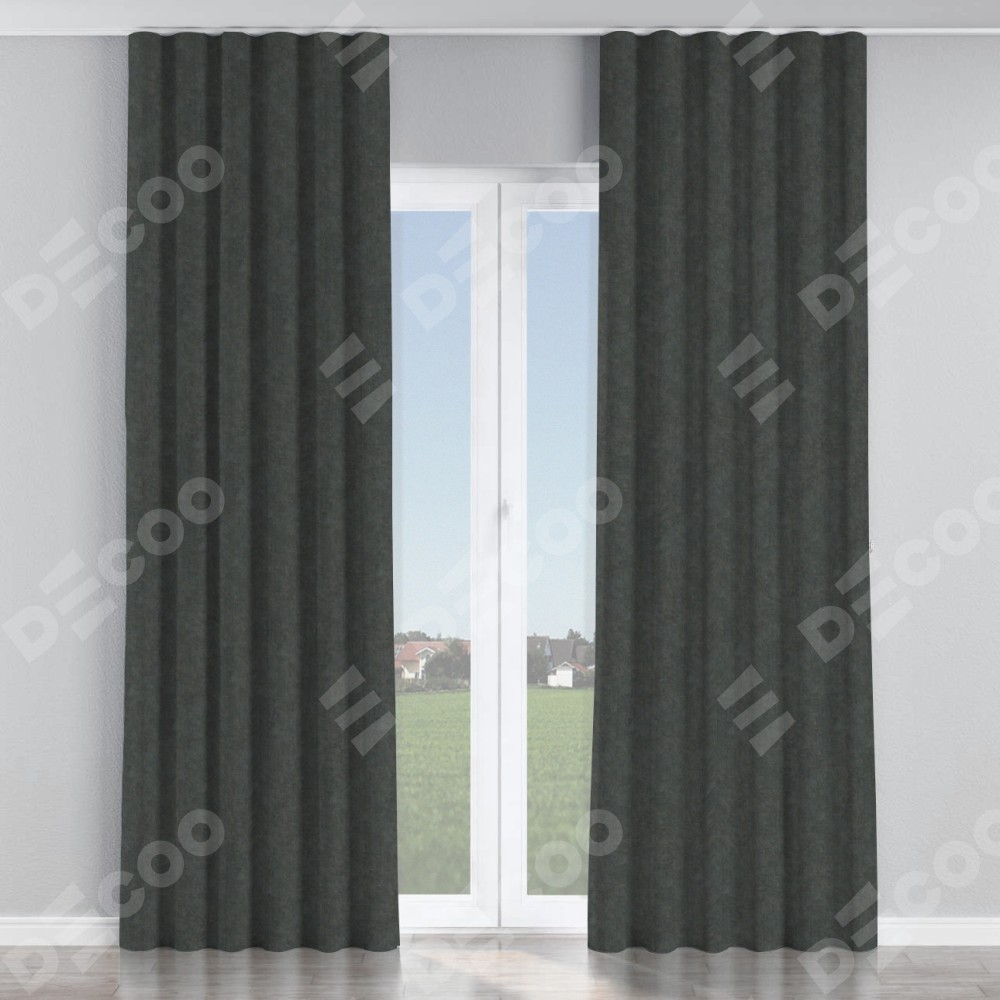 Комплект прямых штор, от производителя «Cortin», пошиты из ткани вельвет тёмно-серый, артикул ткани 33811. С изнаночной стороны в верхней части штор пристрачивается шторная лента с декоративными складками «Волна». Для создания элегантных складок прямые шторы шьются по стандарту с коэффициентом 1:2 (на 100 см. ширины проёма 200 см. ширины ткани).