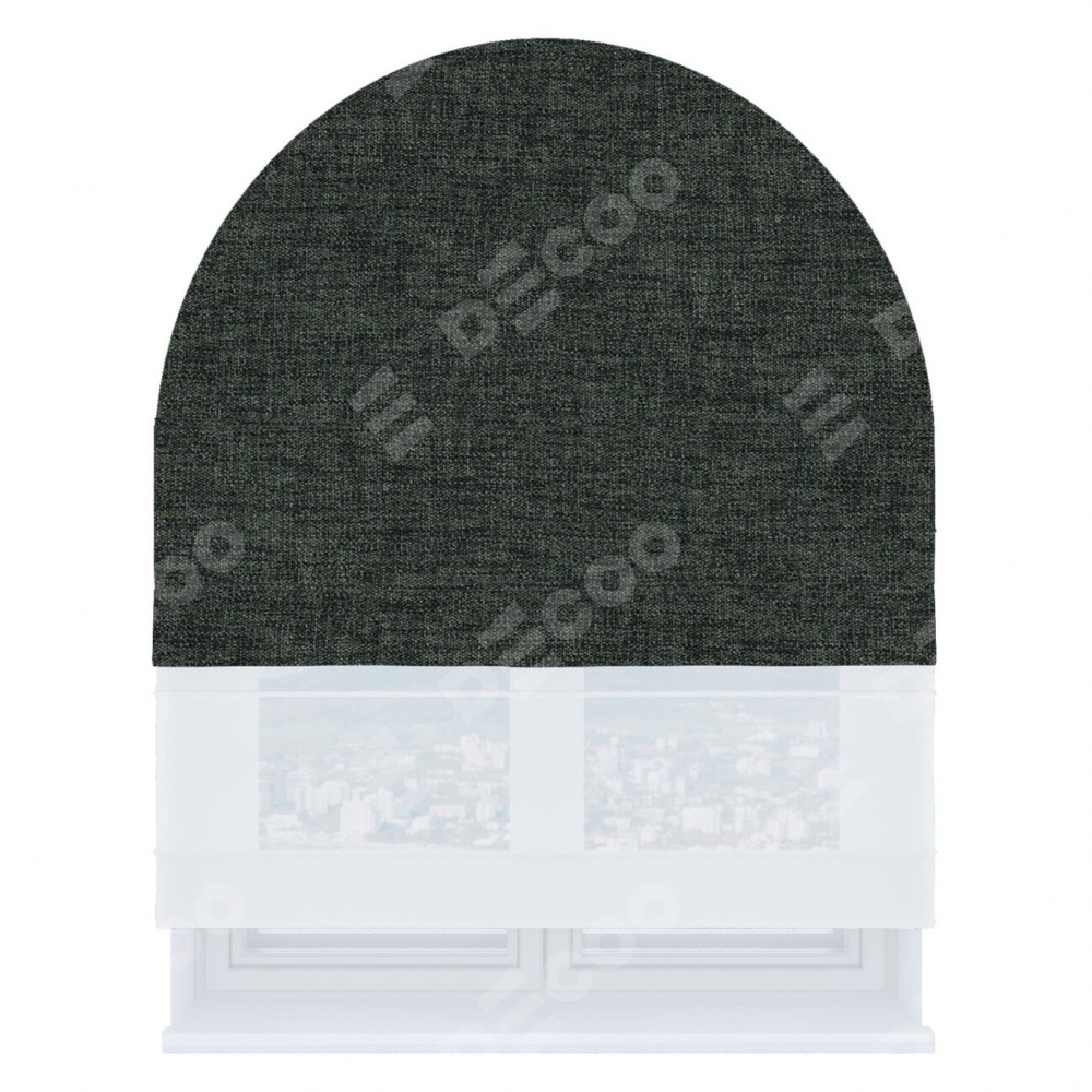 Римская штора день-ночь производителя «Cortin», используется для арочного проёма, пошита из двух полотен, с лицевой стороны рогожка димаут графит артикул 102−34, вторая ткань тюль (по стандарту комплектуется тюль белого цвета артикул V-01). Штора шьётся по индивидуальным размерам, для данного типа римской шторы возможная ширина от 60 до 300 см. Удобное управление каждой шторой отдельно.