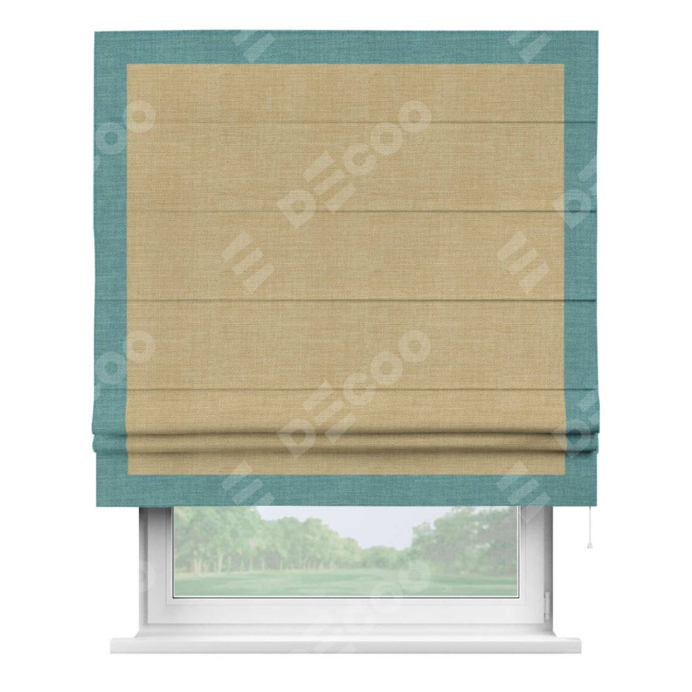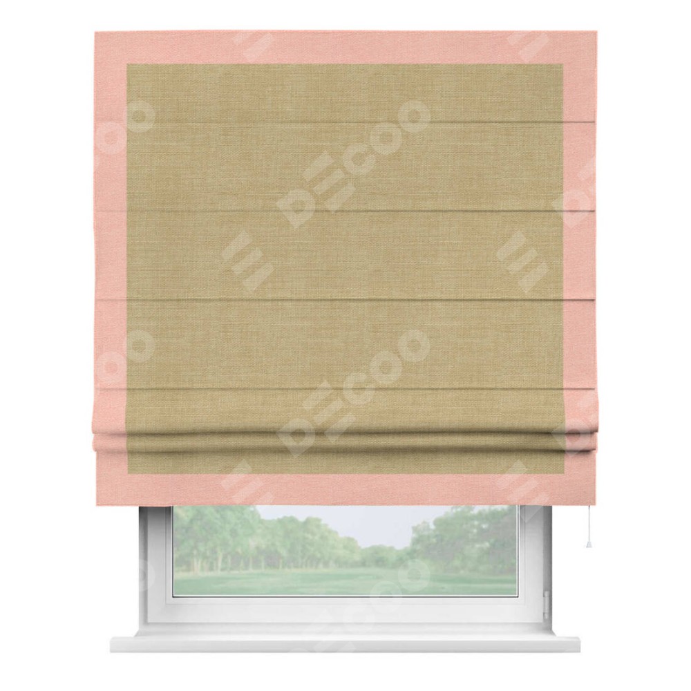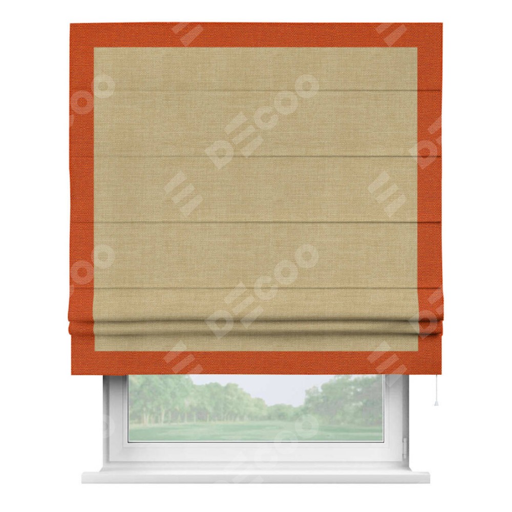 Римская штора «Кортин» с кантом Чесс, для проема, ткань лён бежевый