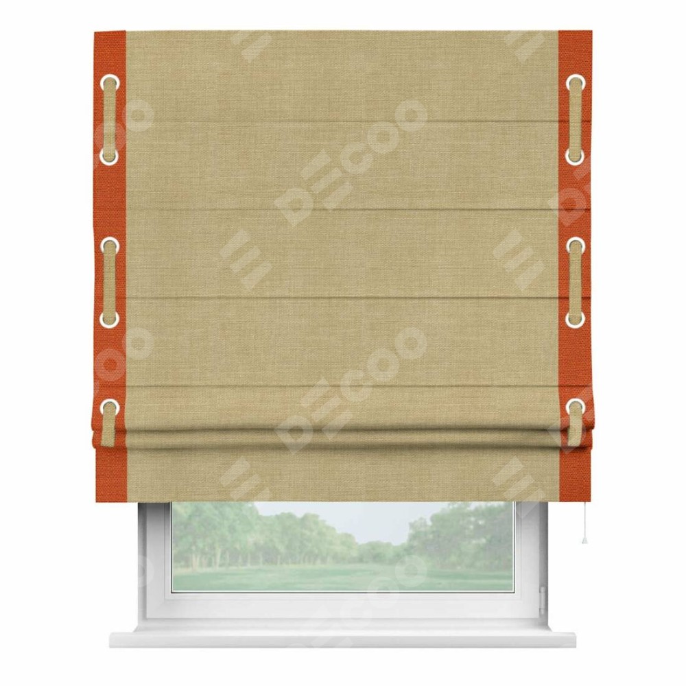 Римская штора «Кортин» с кантом Стрим Дуо (люверсы с пояском), для проема, ткань лён бежевый