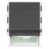 Римская штора производителя «Cortin», используется для проёма, пошита из ткани вельвет тёмно-серый, артикул ткани 33811. Отделка шторы кантом «Стрим Дуо» на кантах расположены люверсы с пояском, ткань для канта используется из вельвета разной расцветки на выбор. Ткань для пояска обычно используется из основной ткани шторы, а так же можно сделать из любой расцветки по желанию. Имеет универсальный механизм и подходит для монтажа: на потолок, на стену и в нишу.