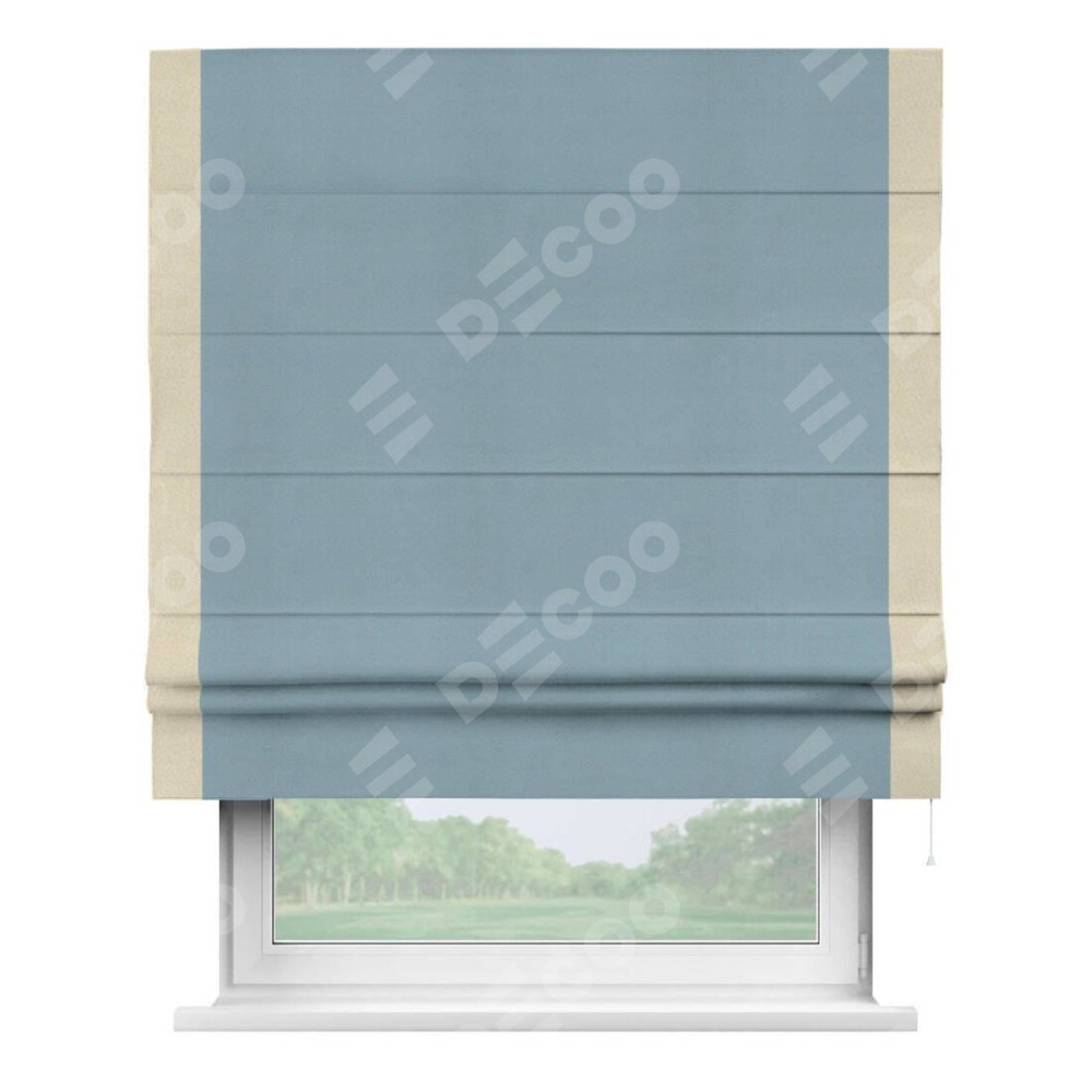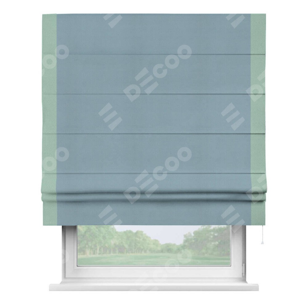 Римская штора «Кортин» с кантом Стрим Дуо, для проема, ткань блэкаут однотонный серо-голубой
