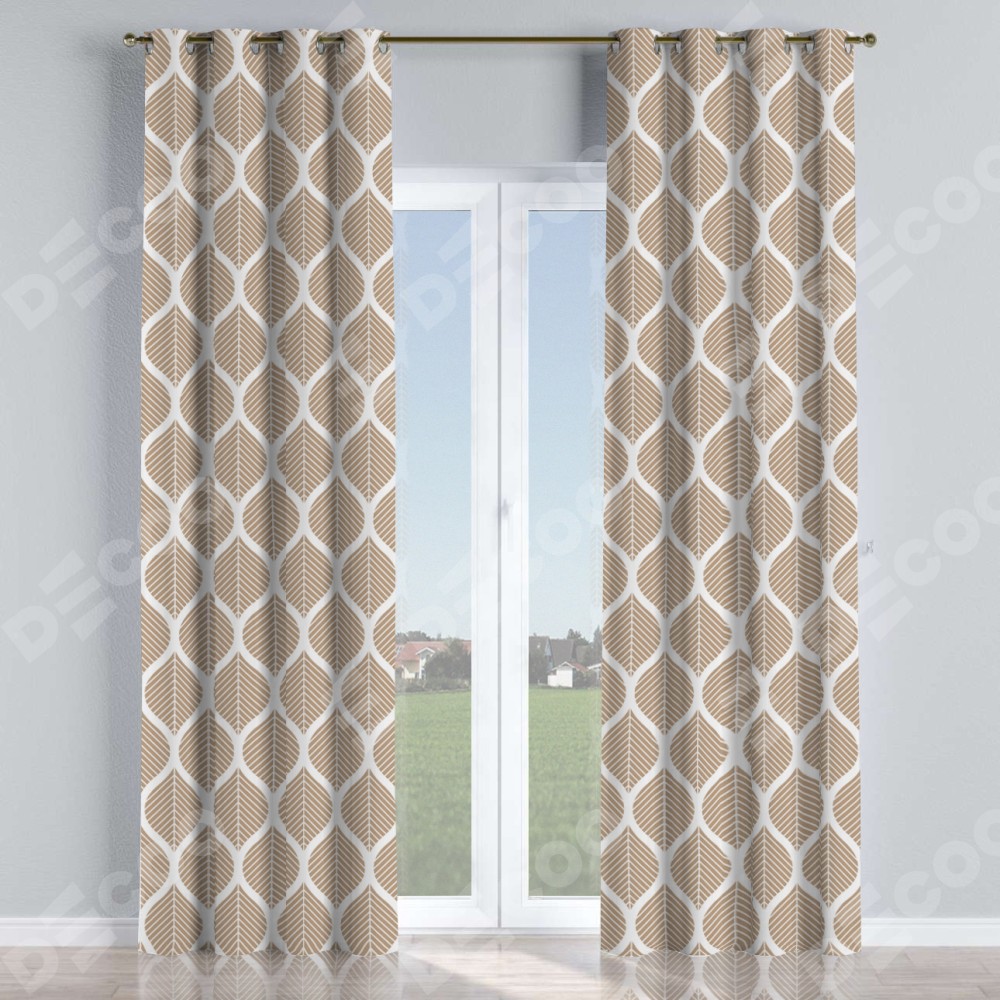 Комплект прямых штор, от производителя «Cortin», пошиты из ткани блэкаут с нанесением сублимационной печати «Листья геометрия». Данная модель пошита на люверсах, комплектуется на выбор круглым карнизом и подходит для монтажа на стену или потолок. Прямые шторы на люверсах шьются по стандарту с коэффициентом 1/2 (на 100 см. ширины проёма 200 см. ширины ткани), отличительным преимуществом данной модели является простой способ монтажа. Достаточно повесить ее на трубу и штора готова!