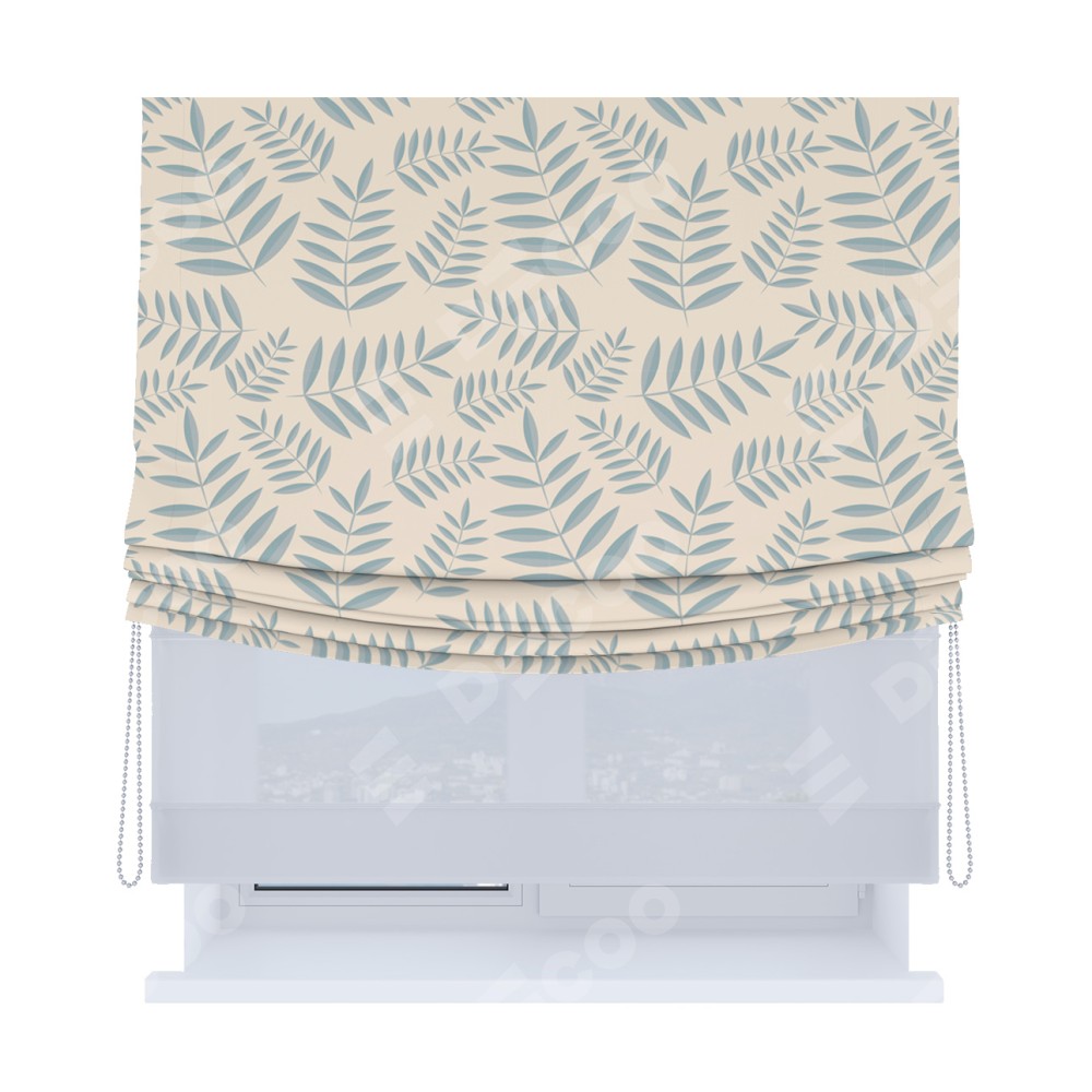 Римская штора день-ночь производителя «Cortin», используется для проёма, пошита из двух полотен, с лицевой блэкаут с нанесением сублимационной печати «Веточка с листочками», вторая ткань тюль (по стандарту комплектуется тюль белого цвета артикул V-01). Имеет универсальный механизм и подходит для монтажа: на потолок, на стену и в нишу. Удобное управление каждой шторой отдельно.