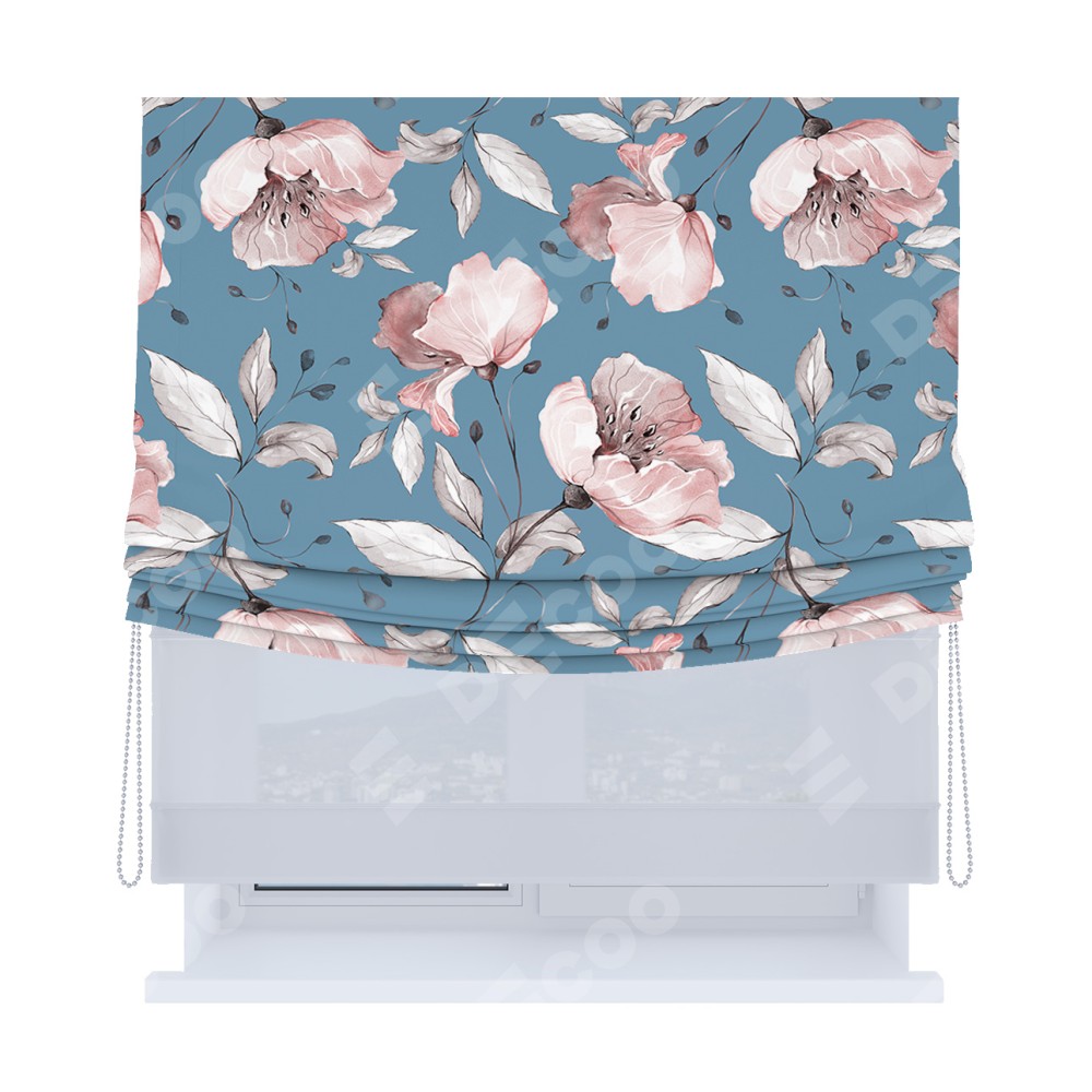 Римская штора день-ночь производителя «Cortin», используется для проёма, пошита из двух полотен, с лицевой блэкаут с нанесением сублимационной печати «Розовая лагуна», вторая ткань тюль (по стандарту комплектуется тюль белого цвета артикул V-01). Имеет универсальный механизм и подходит для монтажа: на потолок, на стену и в нишу. Удобное управление каждой шторой отдельно.