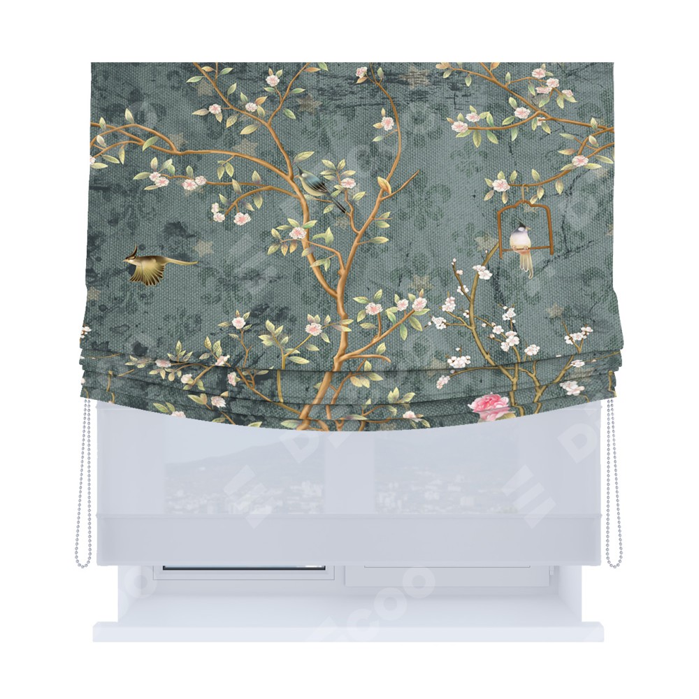 Римская штора «Кортин», день-ночь с мягкими складками, «Тенистый сад»