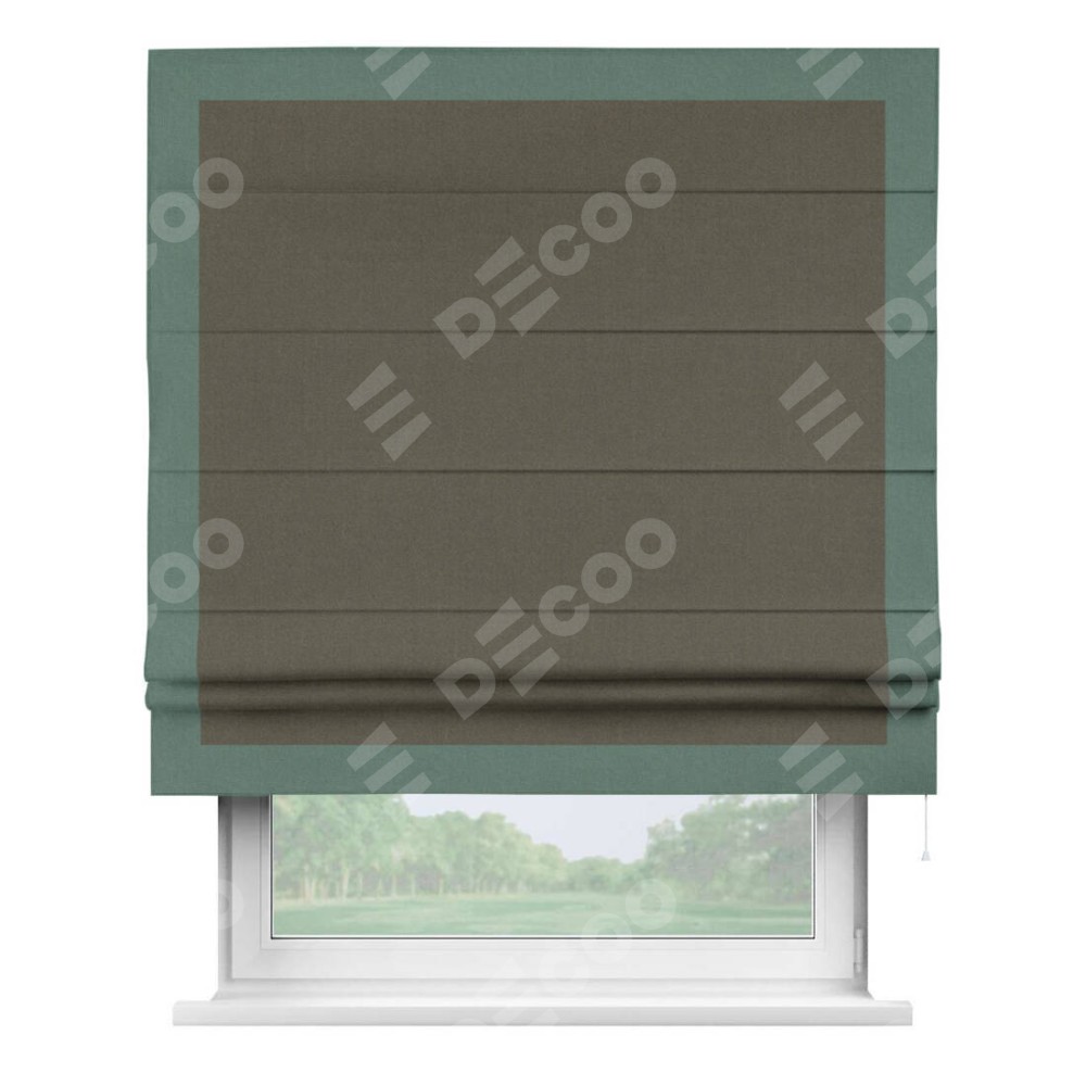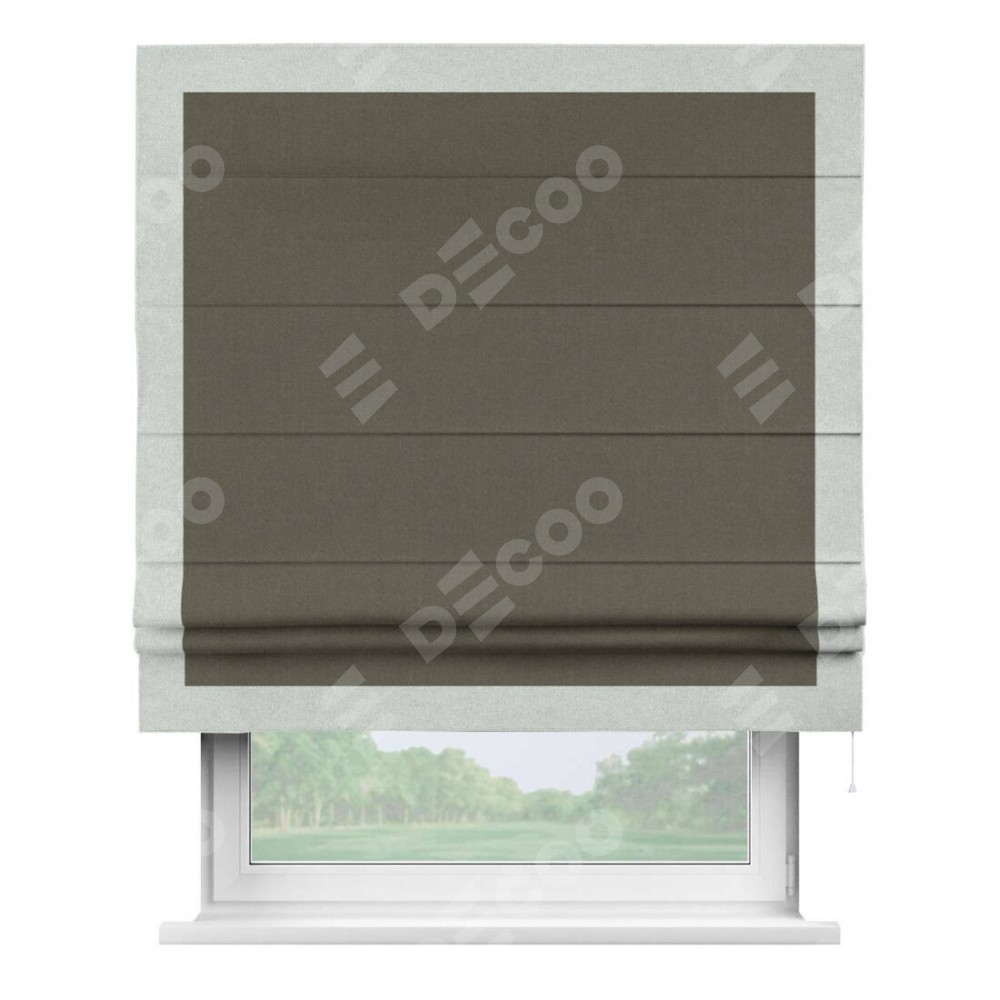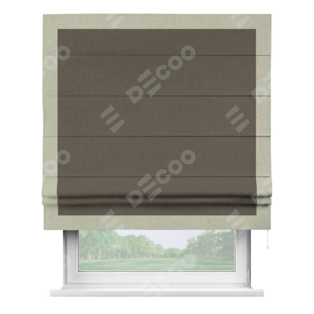 Римская штора «Кортин» с кантом Чесс, для проема, лён блэкаут коричневый