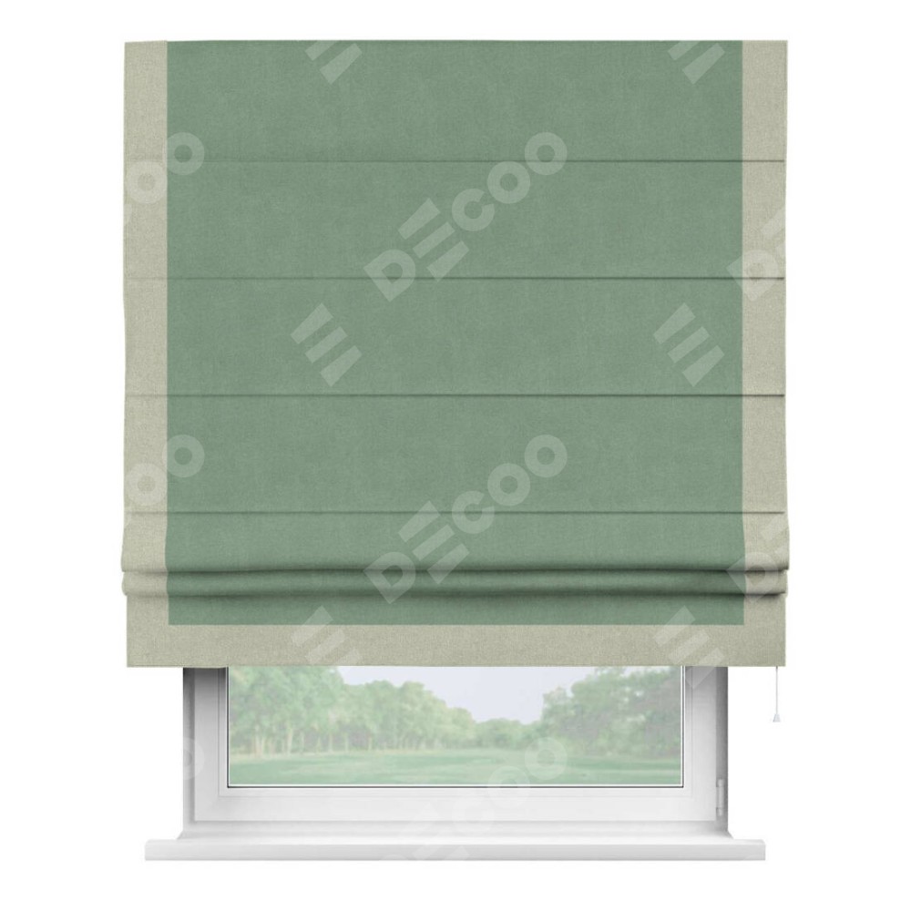 Римская штора «Кортин» с кантом Виктория, для проема, лён блэкаут светло-бирюзовый