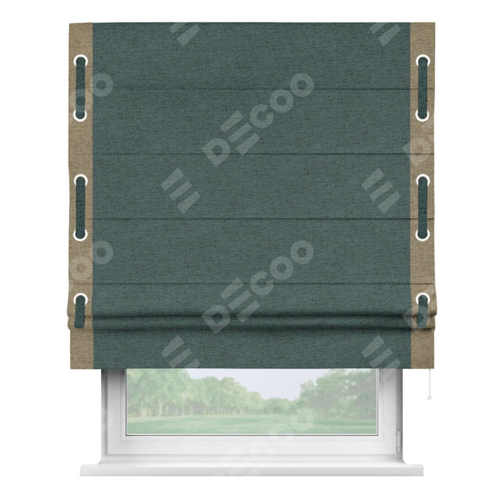 Римская штора «Кортин» с кантом Стрим Дуо (люверсы с пояском), для проема, ткань стиф димаут сине-зелёный