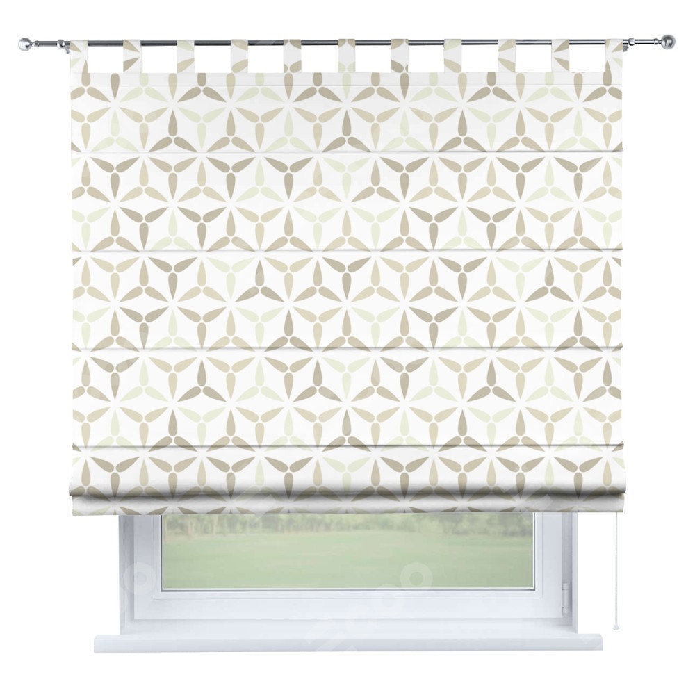 Римская штора производителя «Cortin», используется для проёма, пошита из ткани блэкаут с нанесением сублимационной печати «Бежевая графика». Данная модель пошита на петлях, комплектуется на выбор круглым карнизом и подходит для монтажа на стену. Римская штора на петлях имеет простую систему регулировки высоты, отличительным преимуществом данной модели является простой способ монтажа. Достаточно повесить ее на трубу и штора готова!