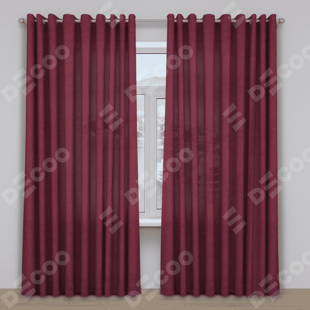 Комплект прямых штор, от производителя «Cortin», пошиты из ткани вельвет бордовый, артикул ткани 85553. Данная модель пошита на люверсах, комплектуется на выбор круглым карнизом и подходит для монтажа на стену. Прямые шторы на люверсах шьются по стандарту с коэффициентом 1/2 (на 100 см. ширины проёма 200 см. ширины ткани), отличительным преимуществом данной модели является простой способ монтажа. Достаточно повесить ее на трубу и штора готова!