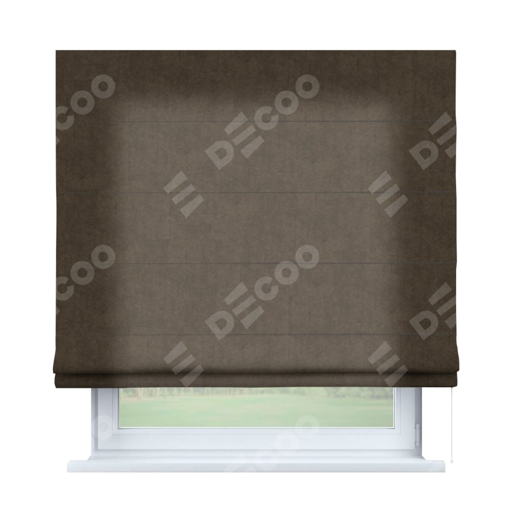 Римская штора производителя «Cortin», используется для проёма, пошита из ткани канвас коричневый, артикул ткани v-29. Имеет универсальный механизм и подходит для монтажа: на потолок, на стену и в нишу.