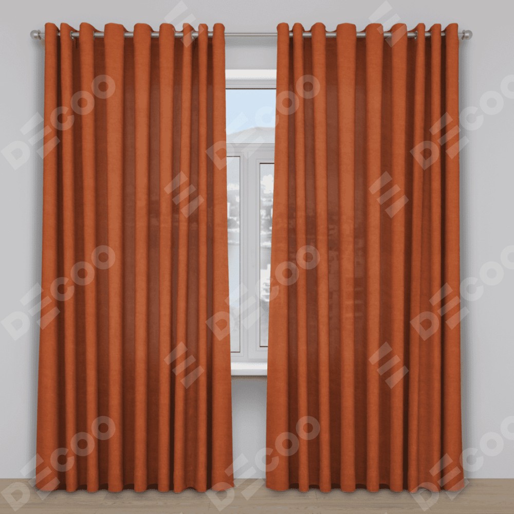 Комплект прямых штор, от производителя «Cortin», пошиты из ткани вельвет терракотовый, артикул ткани 85548. Данная модель пошита на люверсах, комплектуется на выбор круглым карнизом и подходит для монтажа на стену. Прямые шторы на люверсах шьются по стандарту с коэффициентом 1/2 (на 100 см. ширины проёма 200 см. ширины ткани), отличительным преимуществом данной модели является простой способ монтажа. Достаточно повесить ее на трубу и штора готова!