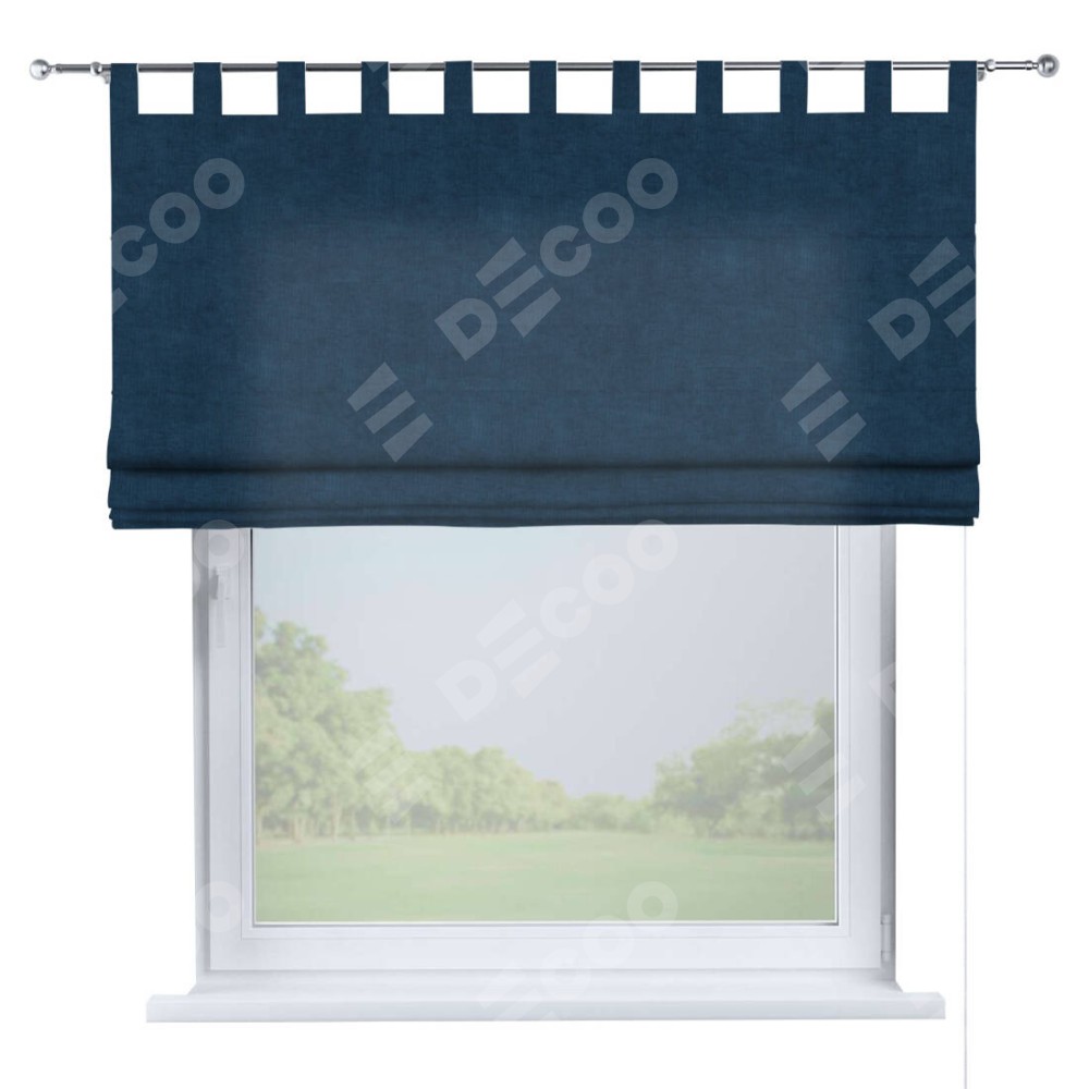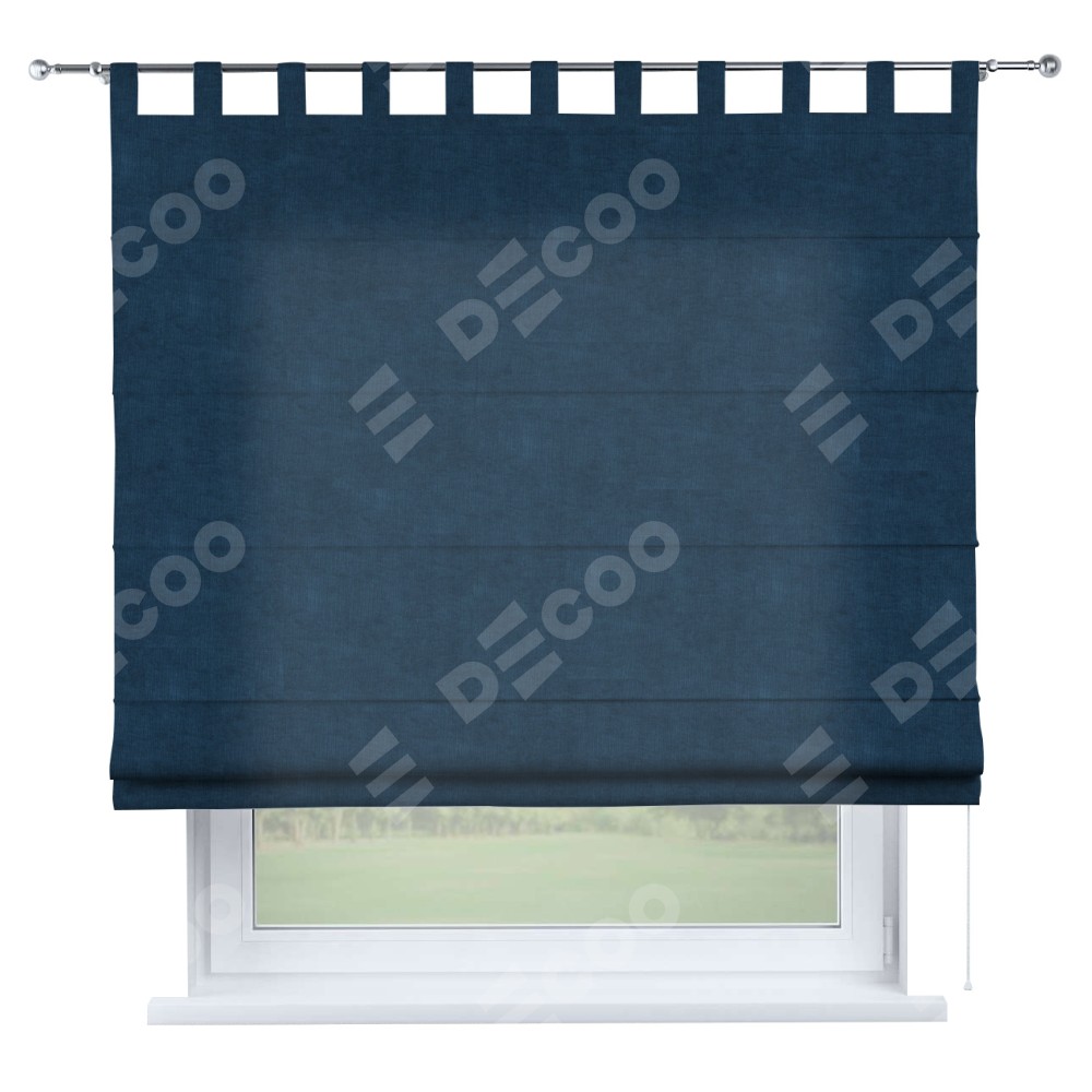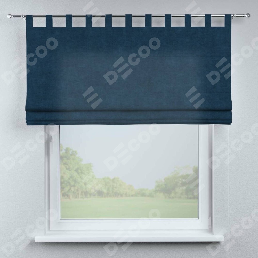 Римская штора производителя «Cortin», используется для проёма, пошита из ткани канвас синий, артикул ткани v-573. Данная модель пошита на петлях, комплектуется на выбор круглым карнизом и подходит для монтажа на стену. Римская штора на петлях имеет простую систему регулировки высоты, отличительным преимуществом данной модели является простой способ монтажа. Достаточно повесить ее на трубу и штора готова!
