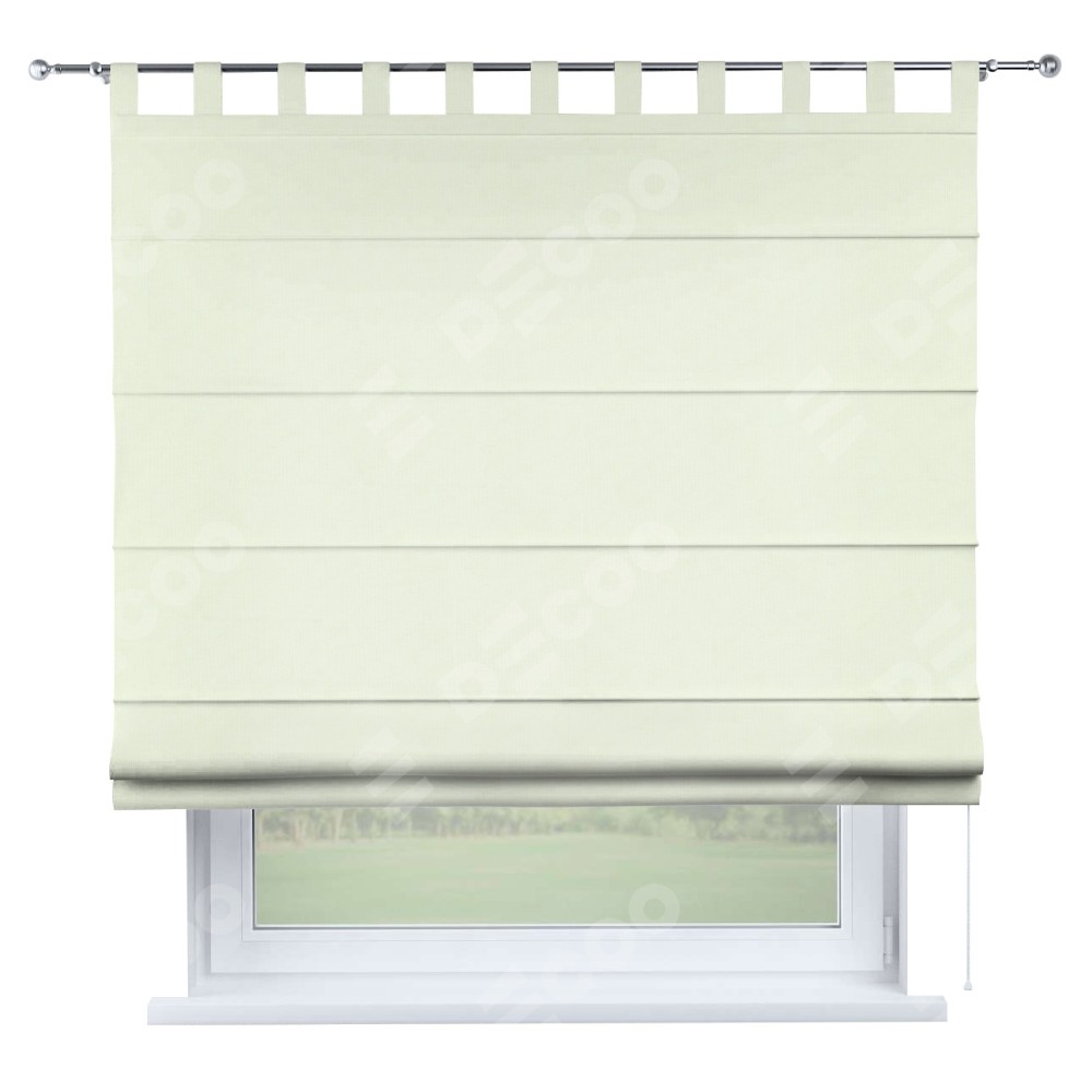 Римская штора производителя «Cortin», используется для проёма, пошита из ткани канвас сливочный, артикул ткани v-94. Данная модель пошита на петлях, комплектуется на выбор круглым карнизом и подходит для монтажа на стену. Римская штора на петлях имеет простую систему регулировки высоты, отличительным преимуществом данной модели является простой способ монтажа. Достаточно повесить ее на трубу и штора готова!
