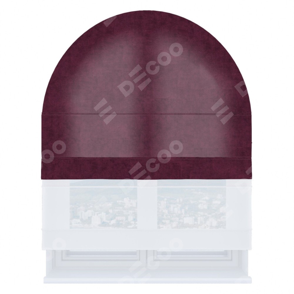 Римская штора день-ночь производителя «Cortin», используется для арочного проёма, пошита из двух полотен, с лицевой стороны канвас фиолетовый артикул v-99, вторая ткань тюль (по стандарту комплектуется тюль белого цвета артикул V-01). Штора шьётся по индивидуальным размерам, для данного типа римской шторы возможная ширина от 60 до 300 см. Удобное управление каждой шторой отдельно.