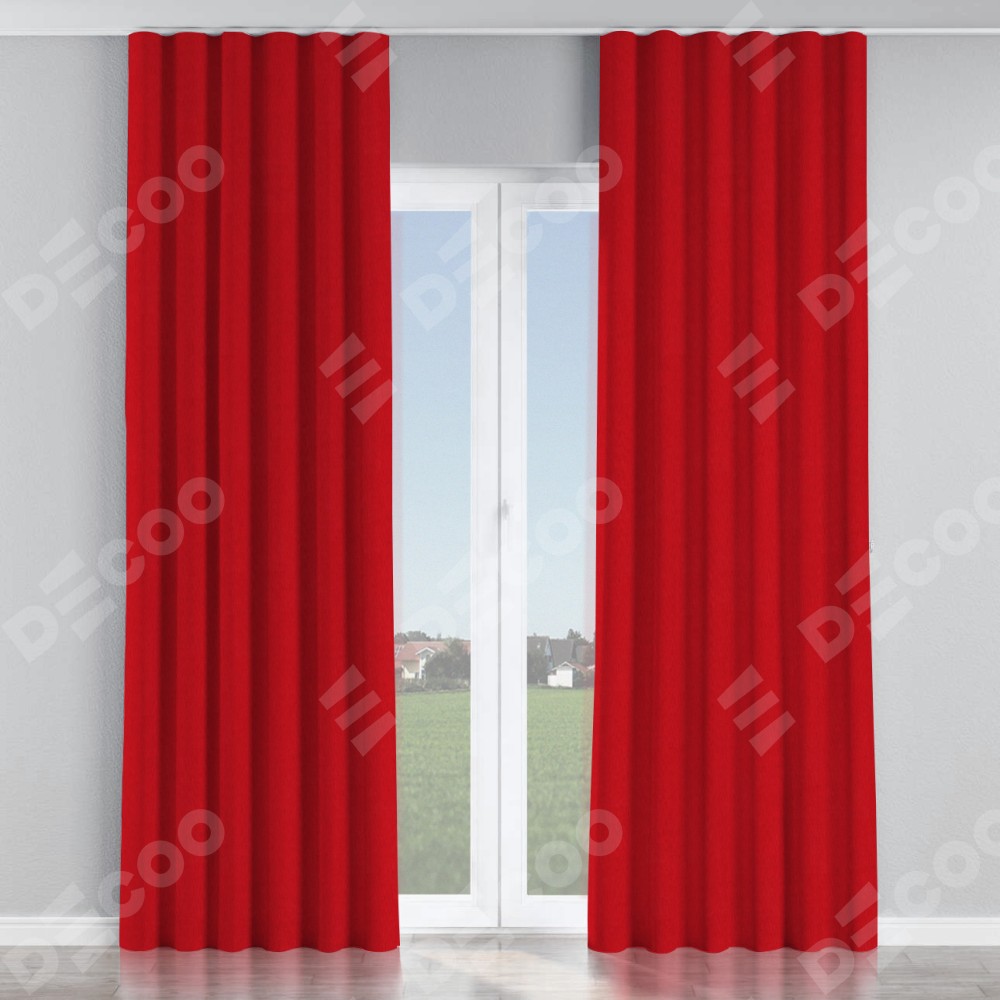 Комплект прямых штор, от производителя «Cortin», пошиты из ткани канвас красный, артикул ткани v-113. С изнаночной стороны в верхней части штор пристрачивается шторная лента с декоративными складками «Волна». Для создания элегантных складок прямые шторы шьются по стандарту с коэффициентом 1:2 (на 100 см. ширины проёма 200 см. ширины ткани).