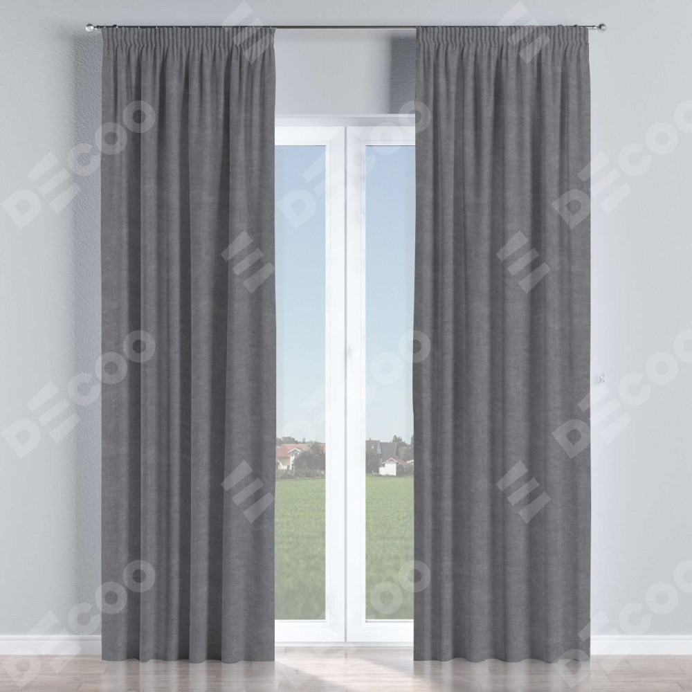 Комплект прямых штор, от производителя «Cortin», пошиты из ткани канвас стальной, артикул ткани v-1082. С изнаночной стороны в верхней части штор пристрачивается шторная лента с декоративными складками «Карандаш». Для создания элегантных складок прямые шторы шьются по стандарту с коэффициентом 1:2 (на 100 см. ширины проёма 200 см. ширины ткани).